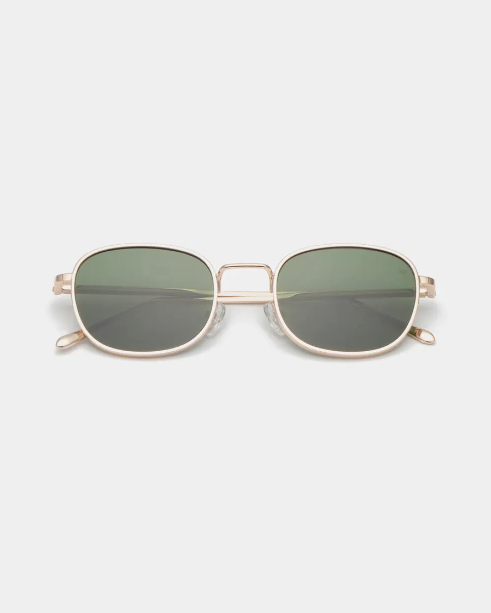 Yli 50 % kierrätysmateriaaleja”>Uudelleentulkinta HELLOsta. 60-luvun Hollywoodin inspiroima nelikulmaiset linssit tyylikkäässä metallikehyksessä, joka kehystää kasvot erottuvalla mutta ajattomalla tavalla. Klassinen elokuvatähti tunnelma.