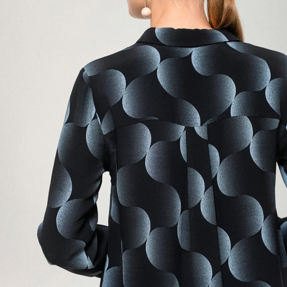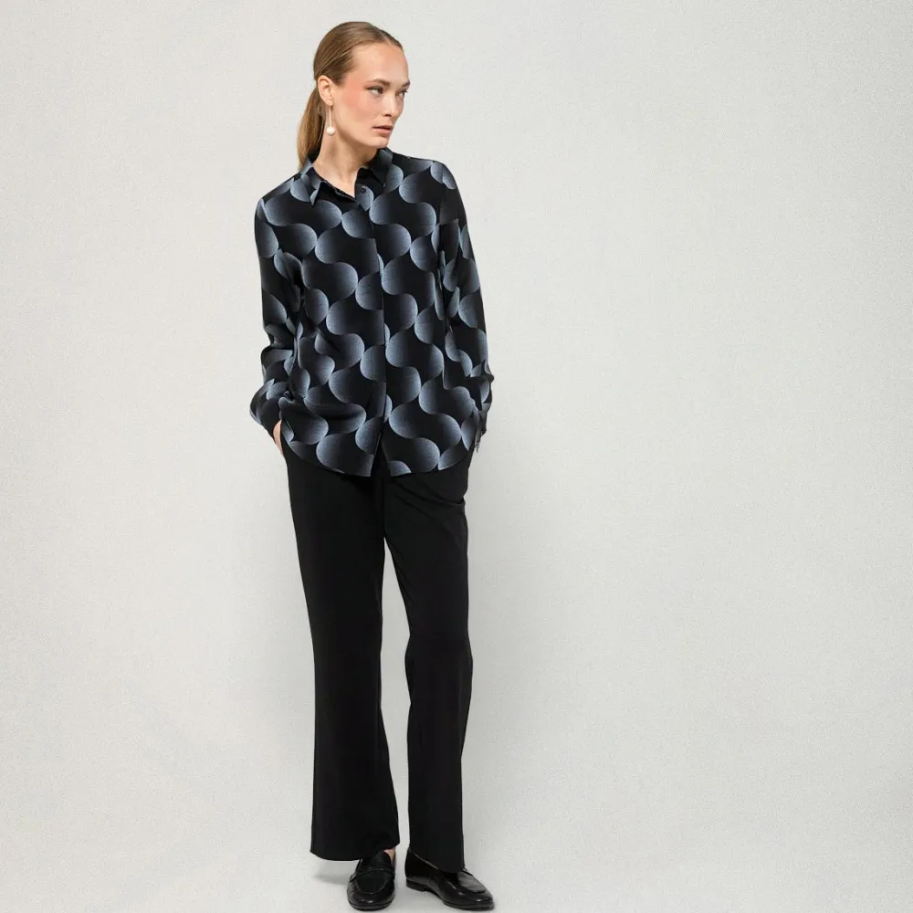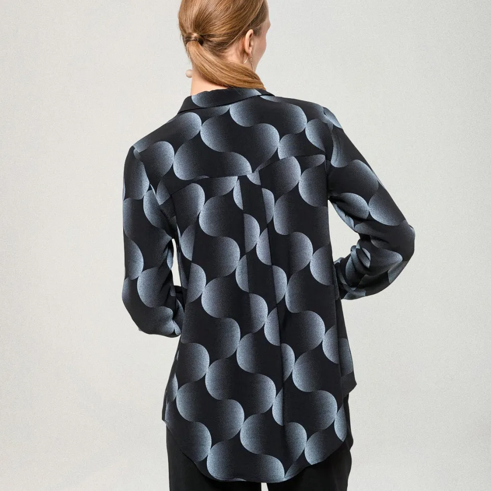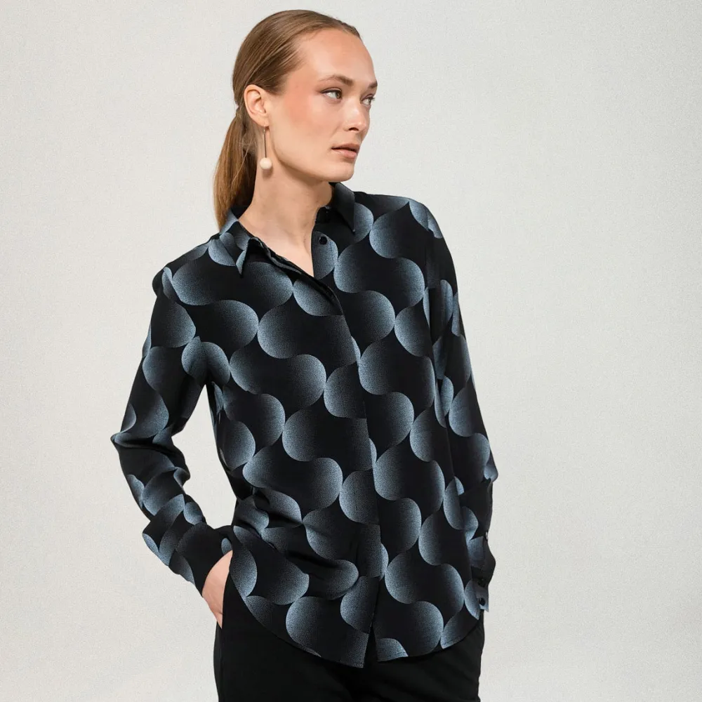 Nebula-kuosisessa Tiila-paidassa on klassiset kaulukset, leveät mansetit hihansuissa ja edessä piilotettu nappikiinnitys. Kauluspaidan materiaali on miellyttävää viskoosia. Suunniteltu Suomessa.