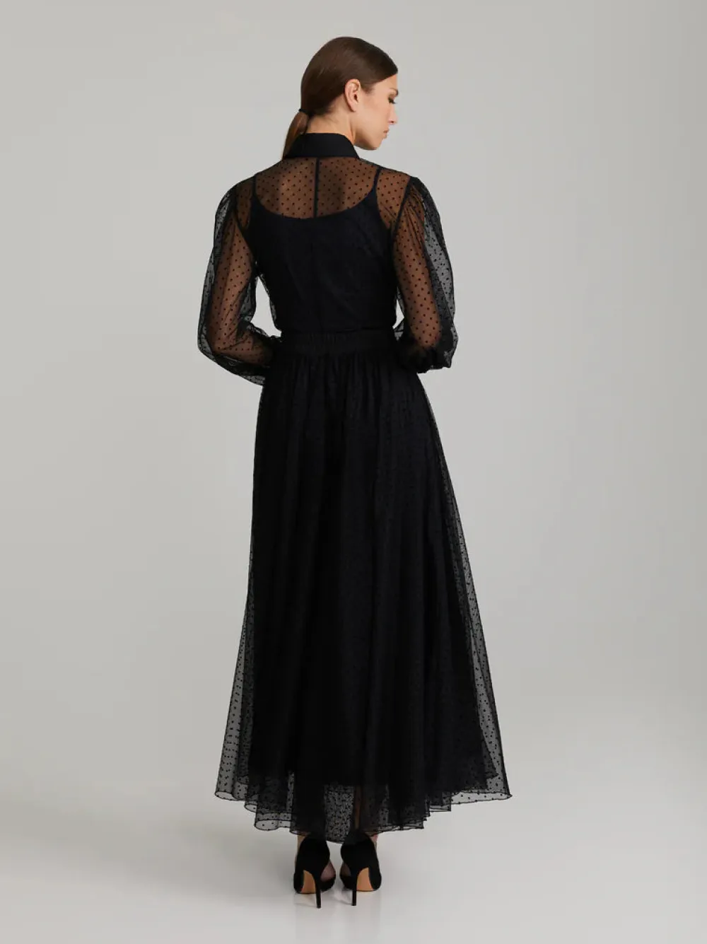 Runsas ja pehmeä tyllihame. Hame on täyspitkä ja siinä on joustava vyötärö. Vuoritettu.