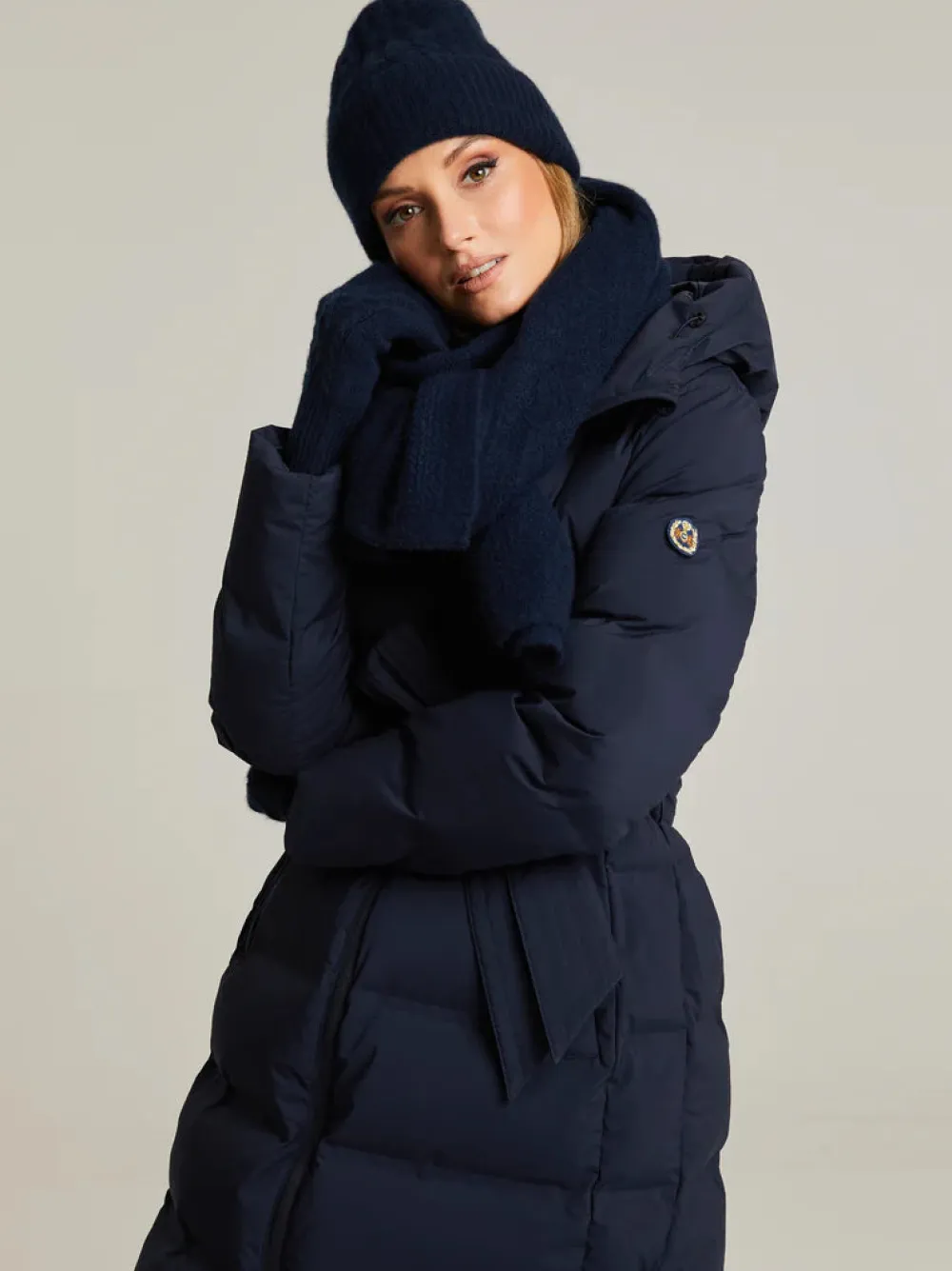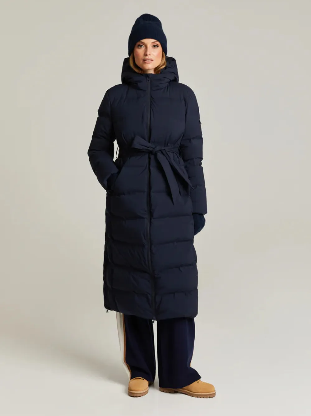 Tyylikäs ja lämmin Andiata Halen -untuvatakki on täydellinen valinta kylmiin talvipäiviin. Pitkä, suoralinjainen klassinen malli, jota täydentävät irrotettava vyö ja käytännölliset sivuvetoketjut liikkuvuuden lisäämiseksi.