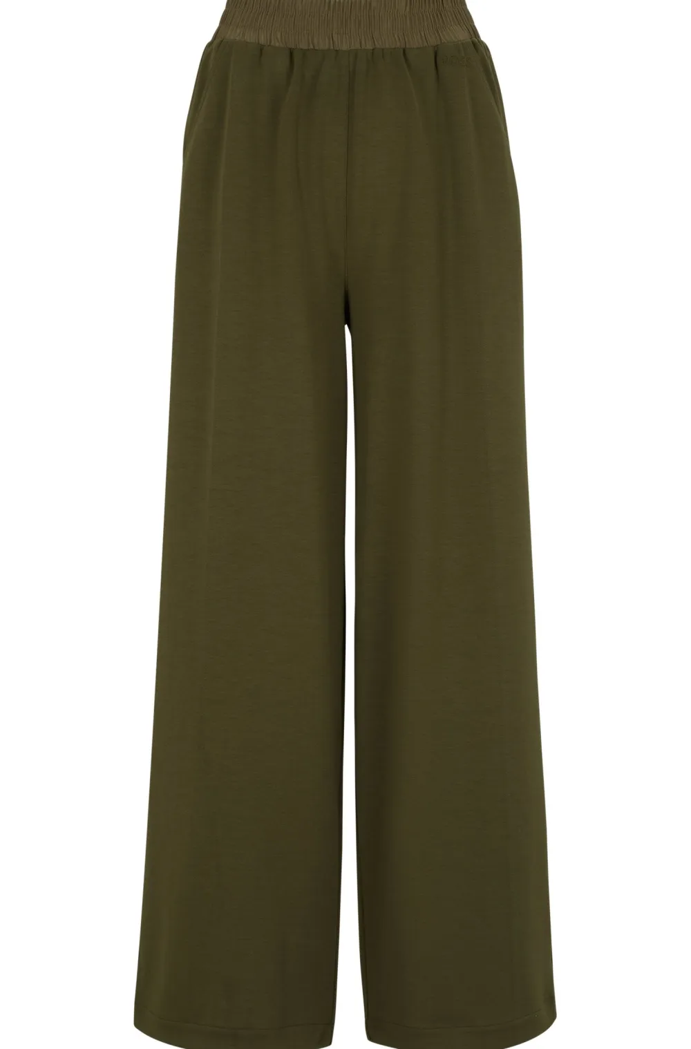 BOSS Womenswearin modernit housut, joissa on leveä lahkeensu. Tämä helppokäyttöinen housu on valmistettu pehmeästä joustavasta kankaasta, jossa on hienovarainen tuotemerkki.