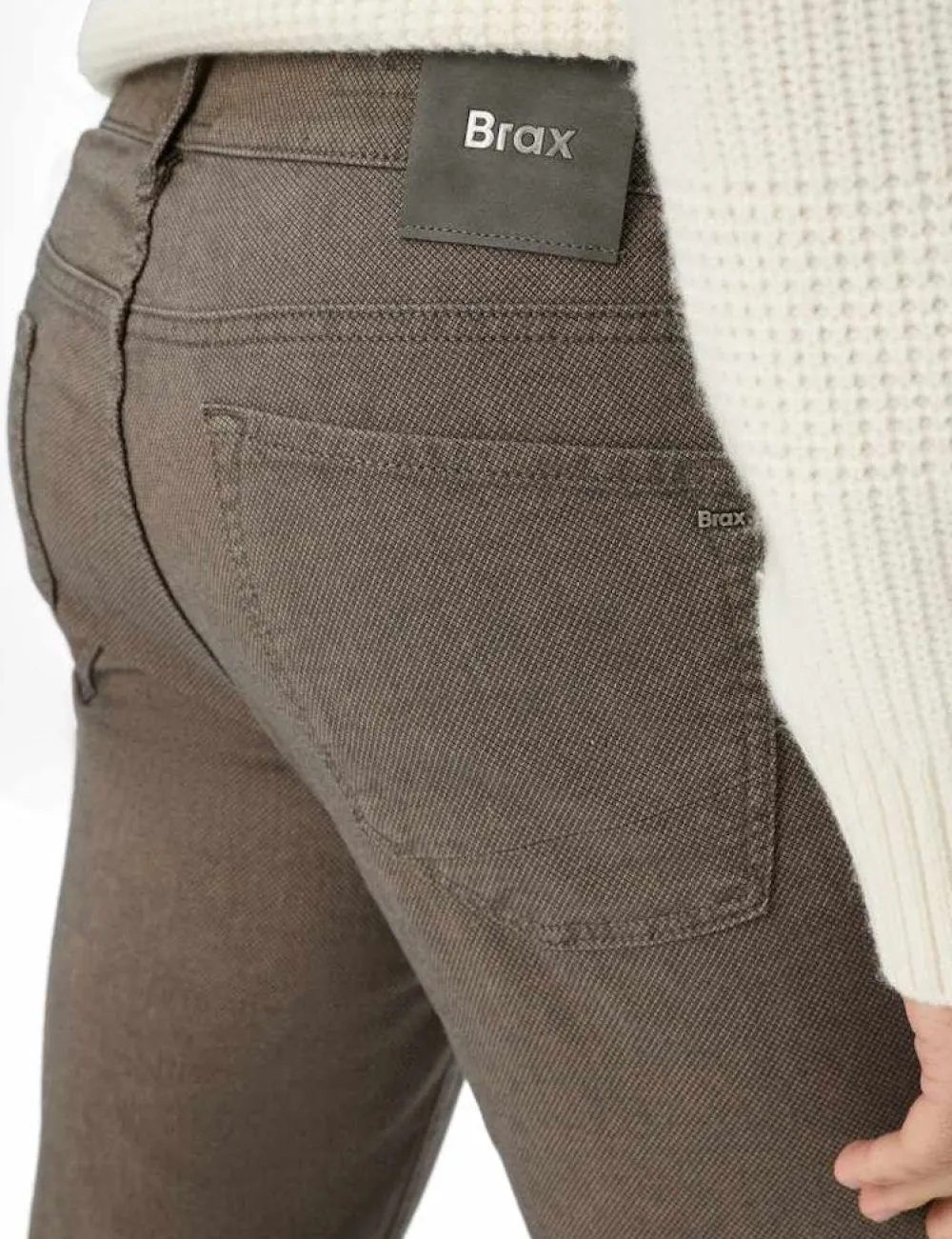 Teksturoitu pinta antaa housuille lisää syvyyttä ja dynaamista ilmettä. Samaan aikaan puuvillasekoite tekee vaikutuksen pehmeällä ja kestävällä mutta joustavalla tuntumalla. Mukavuutta lisää joustava Hi-FLEX-kangas, joka myötäilee vaivattomasti jokaista liikettä. Nämä miesten housut ovat todellinen välttämättömyys – modernit, tyylikkäät ja helposti yhdisteltävät.