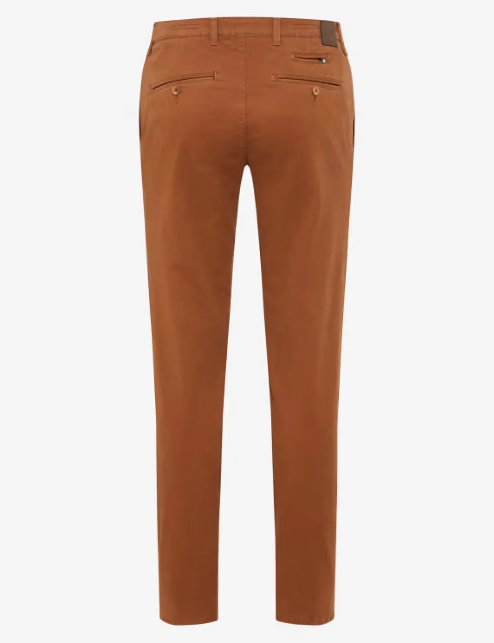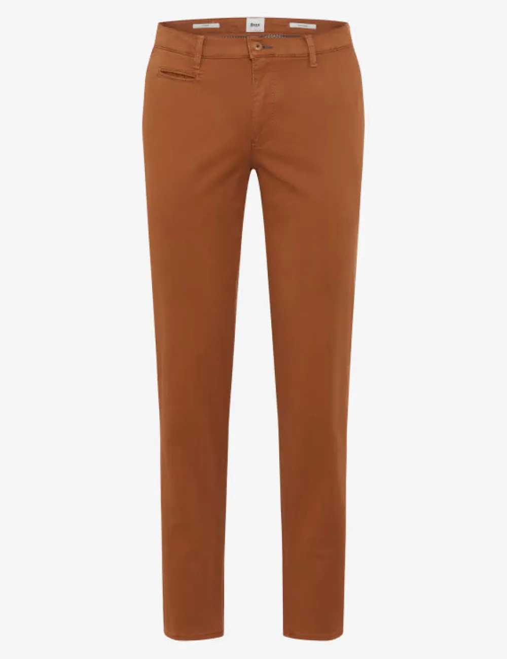 FABIO IN -tyyli on miesten avainvaate. Tyylikäs paidan kanssa tai moderni poolopaidan kanssa – nämä chinot sopivat sekä klassiseen että rennon tyyliin. Nämä modernin malliset miesten housut tarjoavat rennon ilmeen normaalilla vyötäröllä ja kapealla leikkauksella. Housujen monimutkainen taskumuotoilu antaa niille erityisen viehättävän ilmeen. Niissä on myös keinonahkareunus ja koristeelliset niitit. Rajoittamaton liike: Erittäin joustavat Hi-Flex-kuidut takaavat rajattoman liikkumisvapauden korkean joustavuutensa ansiosta – yksinomaan BRAXilta. Kestävä ja ihoystävällinen puuvillasekoite varmistaa myös näiden chinojen täydellisen istuvuuden.