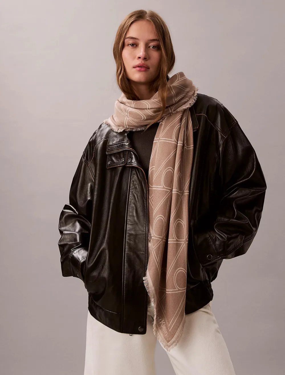 Tämä Calvin Klein Accessories -huivi edustaa brändin hillittyä ja modernia estetiikkaa. Kuosina toimii ikoninen Emblem all-over printti, joka toistuu huivin koko pinnalla – vaalea, sävy tekee siitä helposti yhdistettävän useimpien asujen kanssa. Huivin malli mahdollistaa monipuoliset solmimistyylit: voit käyttää sitä kaulaliinana, olkapäähuivina tai korviin kietaistuna.