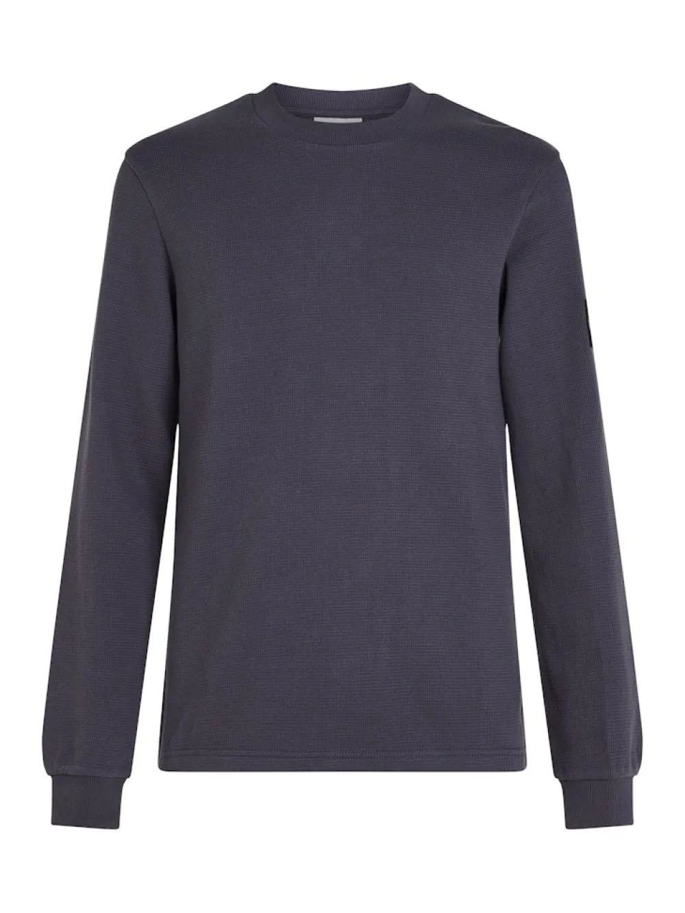 Calvin Klein miesten paita. – Pehmeä kohokuvioitu neule – Slim fit istuvuus – Pyöreä pääntie – Pitkät hihat – Resorineulottu kaulus ja hihansuut – Calvin Kleinin monogrammimerkki hihassa
