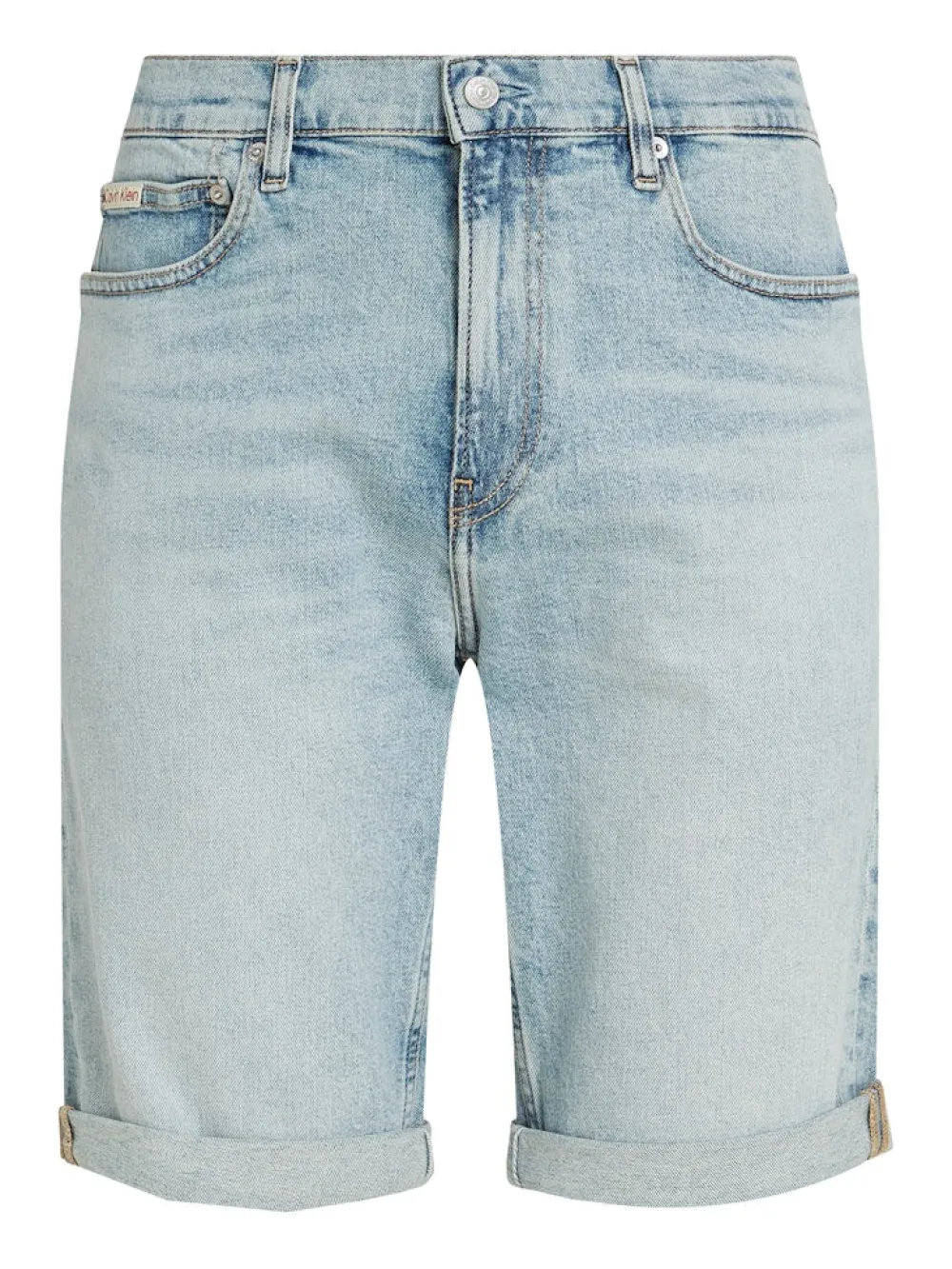 – Kaksi vetoketjullista taskua pakaroissa.”>Calvin Klein Jeans -malliston shortsit hieman joustavasta denimistä. Normaali vyötärömalli, jossa taskut edessä, takana, nappi ja vetoketju.