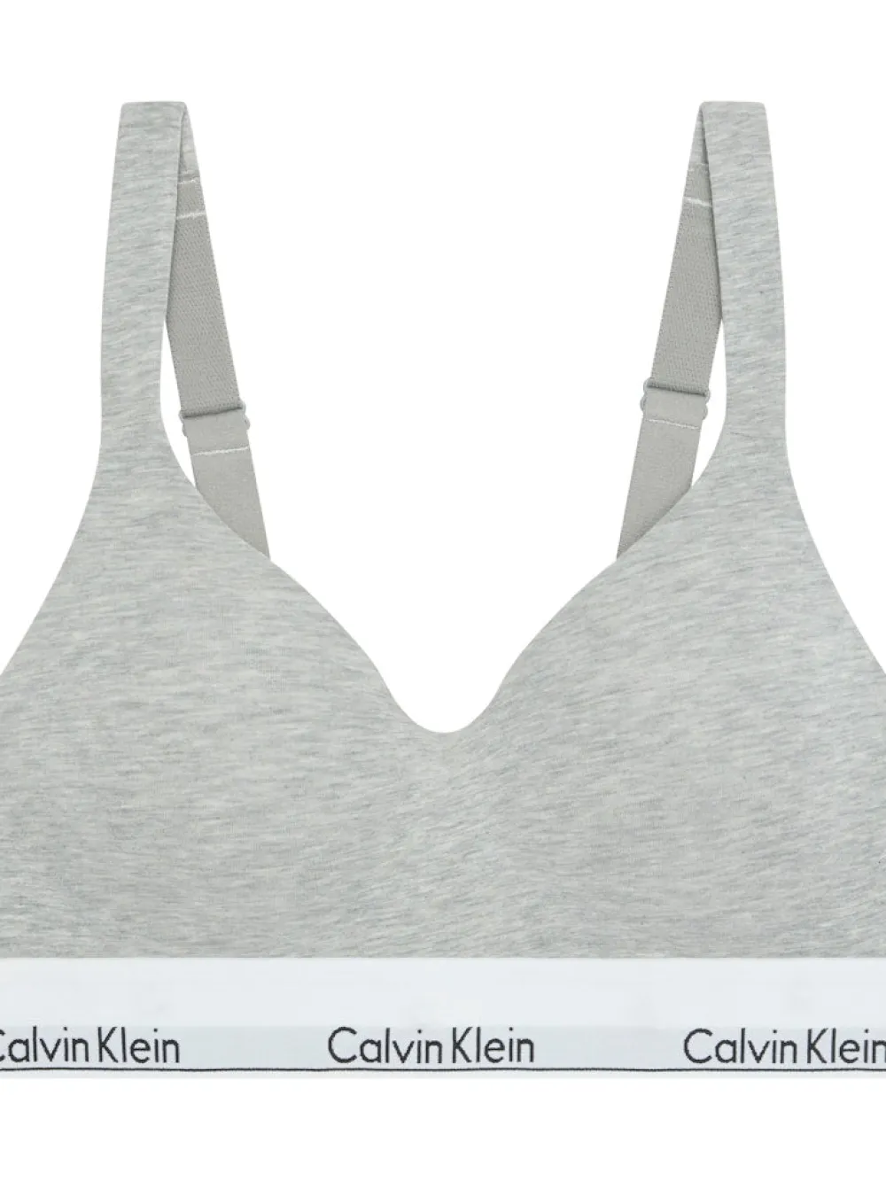 Calvin Kleinin bralette-liivi, jossa leveät, selästä ristiin menevät olkaimet ja joustava rinnanympärys koristeltuna Calvin Klein -logotekstein. Miellyttävä päällä, mutta myös tukeva. Liivi on aavistuksen topattu.