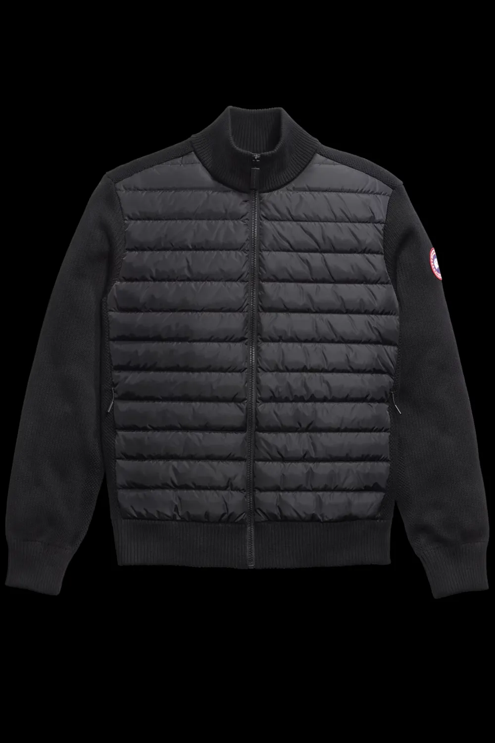 Canada Goose HyBridge Knit Jacket on monikäyttöinen hybriditakki, joka yhdistää pehmeän merinovillaneuleen ja kevyesti topatut untuvapaneelit – näin takki on lämmin mutta hengittävä ja sopii erinomaisesti kerrospukeutumiseen vaihtelevissa sääolosuhteissa. Takissa on ribbineulotut reunat kauluksessa, hihansuissa ja helmassa, jotka antavat hyvän istuvuuden ja muodon säilymisen. Edessä on vetoketju ja kaksi vetoketjullista sivutaskua, joiden pehmeät vuorikankaat pitävät kädet lämpiminä.