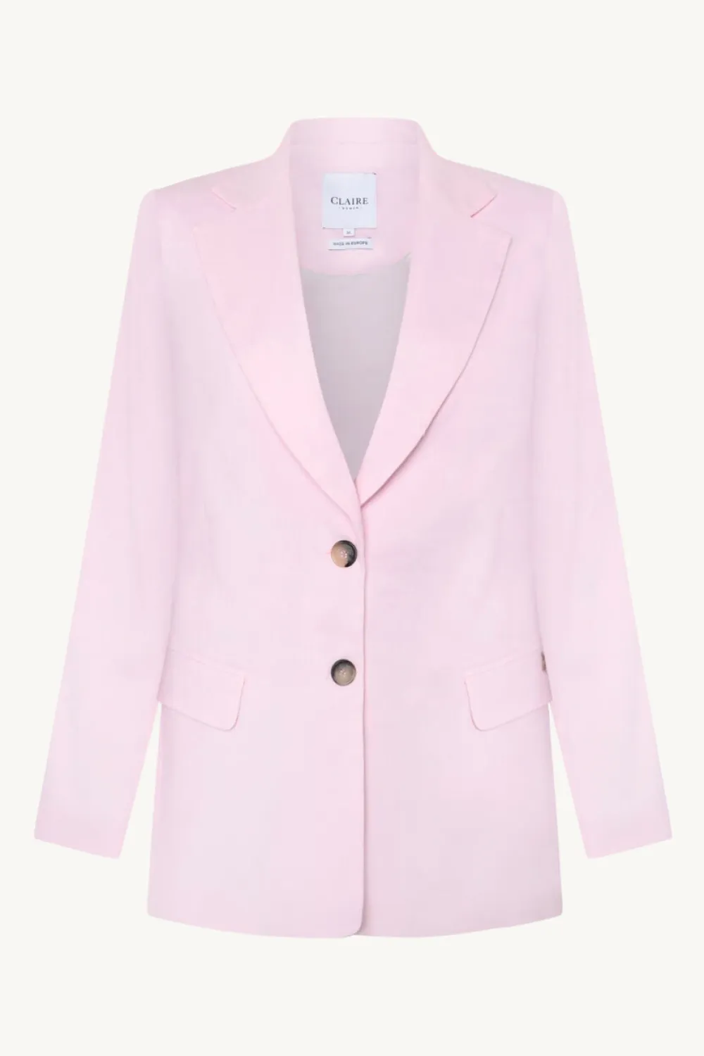 Clairen tyylikäs vuorattu bleiseri, jossa etutaskut, olkapehmusteet ja nappikiinnitys keskellä. Valmistettu Euroopassa.