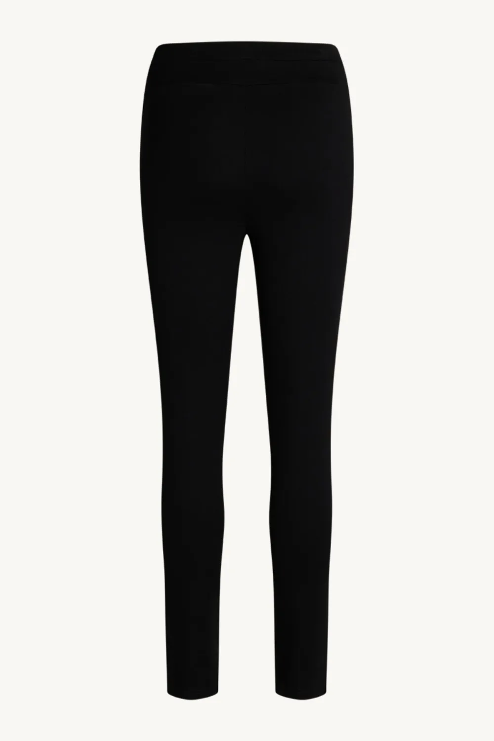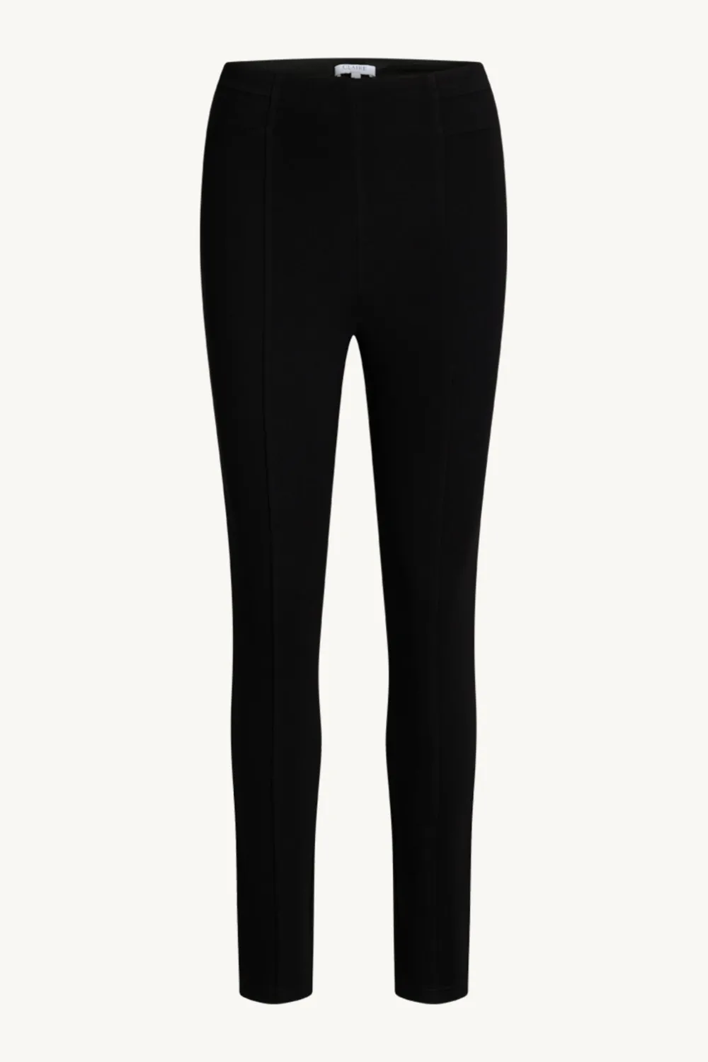 Leggingsit, joissa kapeat paneelit lahkeissa edessä. Vyötäröllä napit ja laskokset. Joustava vyötärö.