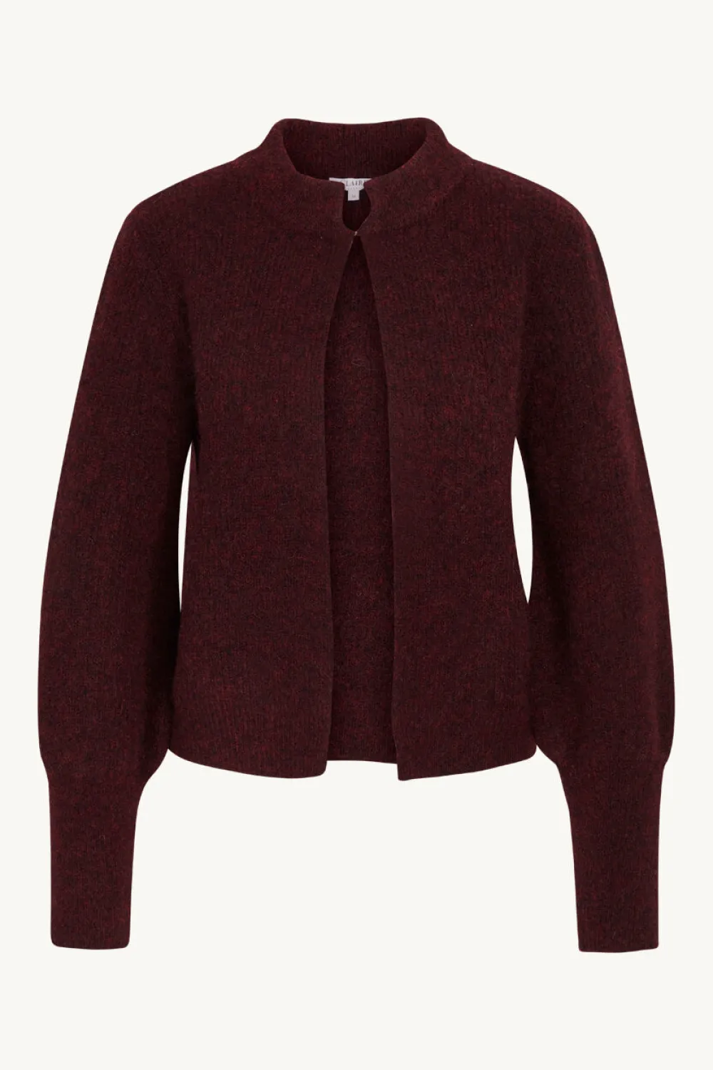 Naisten jakkumainen neuletakki pehmeää, joustavaa mohairia. Lyhyt, vyötärölle ulottuva malli, pallohihat, pitkät resorit hihansuissa.
