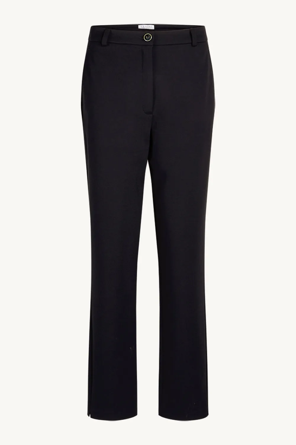 Klassiset housut, joissa suorat lahkeet ja tasku edessä. Lahkeensuissa sivuilla pienet halkiot. Valmistettu joustavasta kankaasta.