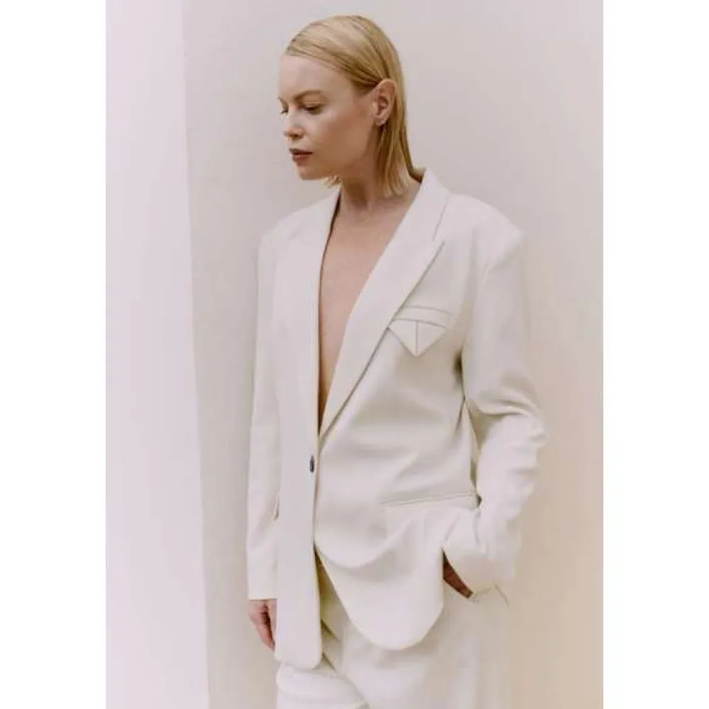 Copenhagen Muse Tailor on tyylikäs ja monikäyttöinen bleiseri, joka tuo huolitellun ilmeen arkeen ja juhlavampiin tilanteisiin. Klassinen V‑pääntie ja kauluskäänteet antavat perinteisen ilmeen, ja logopainettu vuori tuo siihen hienovaraisen yksityiskohdan. Bleiserissä on leveät olkapäät, käytännölliset etutaskut ja takahalkio, jotka yhdessä luovat elegantin ja naisellisen siluetin. Normaali istuvuus, hieman vyötäröä korostava leikkaus ja laadukas materiaaliyhdistelmä tekevät tästä luottovaatteen, jonka voit yhdistää niin farkkuihin kuin hameeseen tai housupukuun.