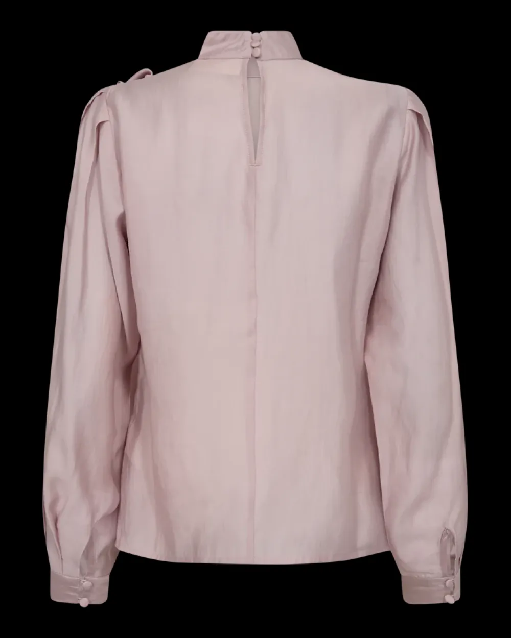 CMMOLLY-BLOUSE on ikonisen herkullinen pusero, joka sisältää paljon lyocellia. Puserossa on pitkät, runsaat hihat, joissa on laskoksia ja hihansuita, takana halkio kangasnapeilla, korkea kaulus ja edessä näyttävä röyhelö, joka luo kontrastin minimalistiselle tyylille.