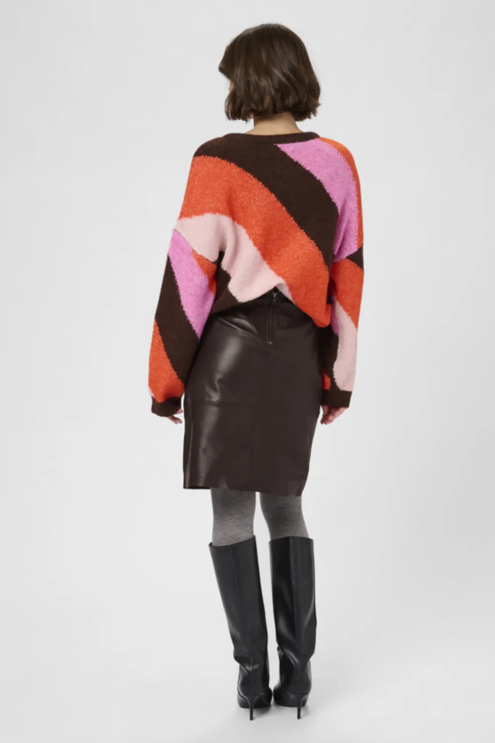 Naisten tyylikäs nahkahame. Normaali vyötärö.