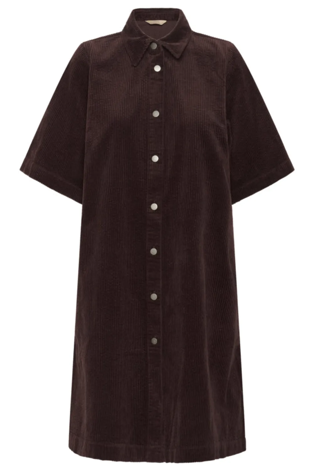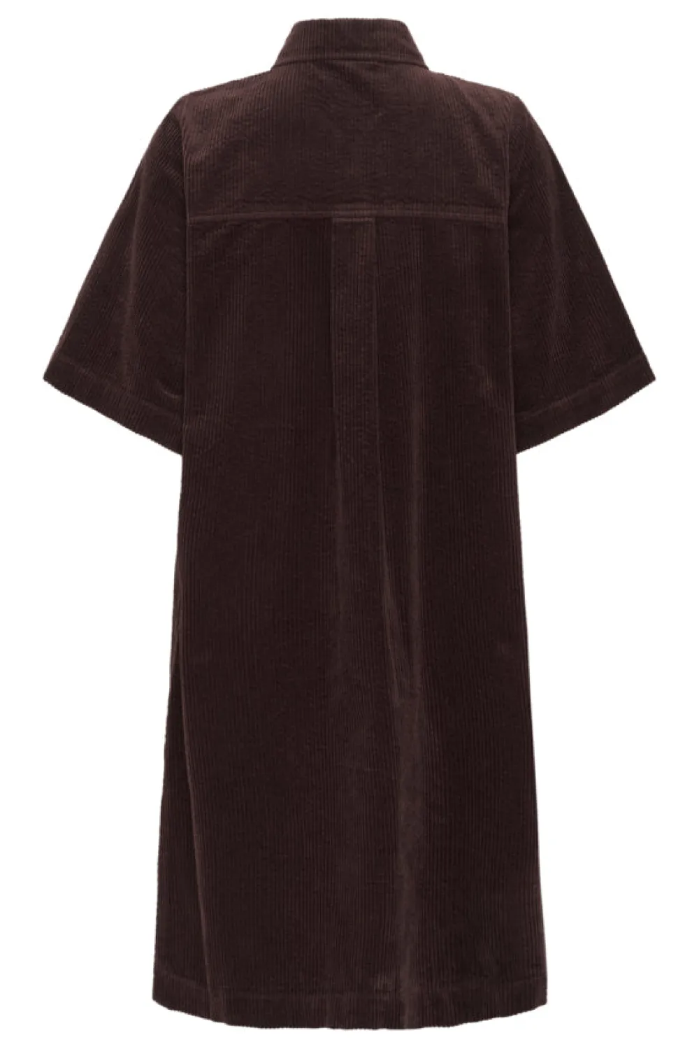 Naisten samettipaitamekko, jossa on rento istuvuus, teräväkaulus, napitettava etuosa, kyynärpäähän ulottuvat hihat ja polvipituinen leikkaus. Strukturoitu mutta mukava malli sopii erinomaisesti monipuoliseen arkikäyttöön.