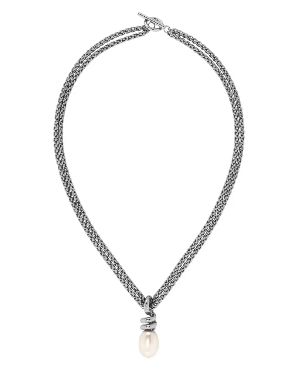 Swivel sopii antamaan tyyliin hieman erilaisen silauksen. Ajaton ja hienostunut sarja, joka leikkii jännittävillä spiraalimaisilla muodoilla ja ovaaleille helmiäishelmillä ja sopii niin toimistoon kuin iltamenoihin. Tässä isokokoinen kaulakoru kiiltävästä ruostumattomasta teräksestä, jossa veistoksellisena riipuksena on spiraali ja helmi. Sopii hyvin yhteen sarjan muiden korujen kanssa.