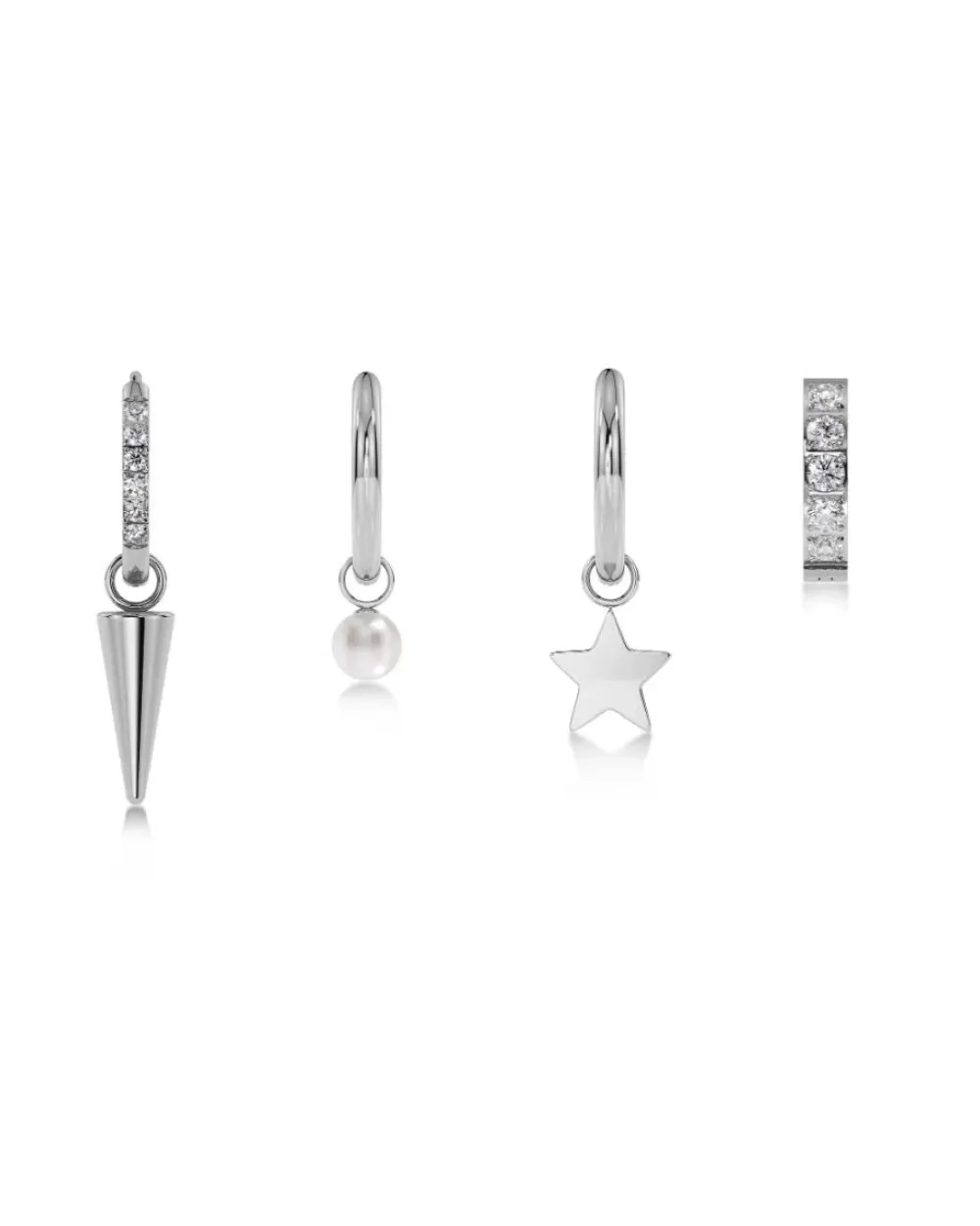 Tyylikkäät renkaanmuotoiset korvakorut, jotka on valmistettu kiiltävästä ruostumattomasta teräksestä. Renkaiden halkaisija on 11 mm, pienempi komponentti 3 mm ja tähti‑riipus 5 mm. Materiaalina käytetty teräs on nikkeliturvallinen ja vedenkestävä.