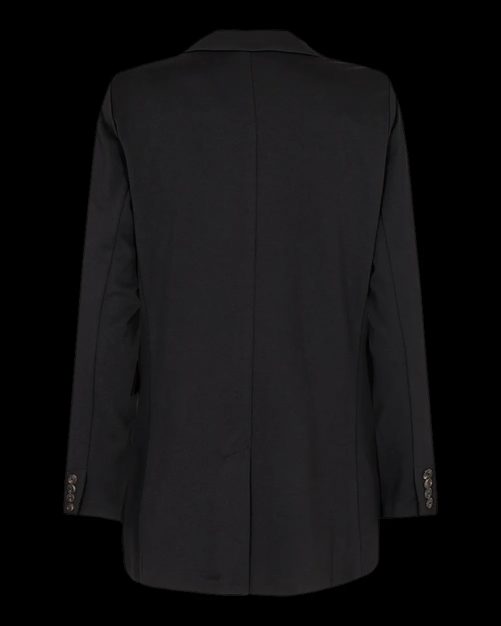 Freequentin tyylikäs, yksivärinen bleiseri. Klassinen siluetti, suora istuvuus, nappikiinnitys edessä ja etutaskut..