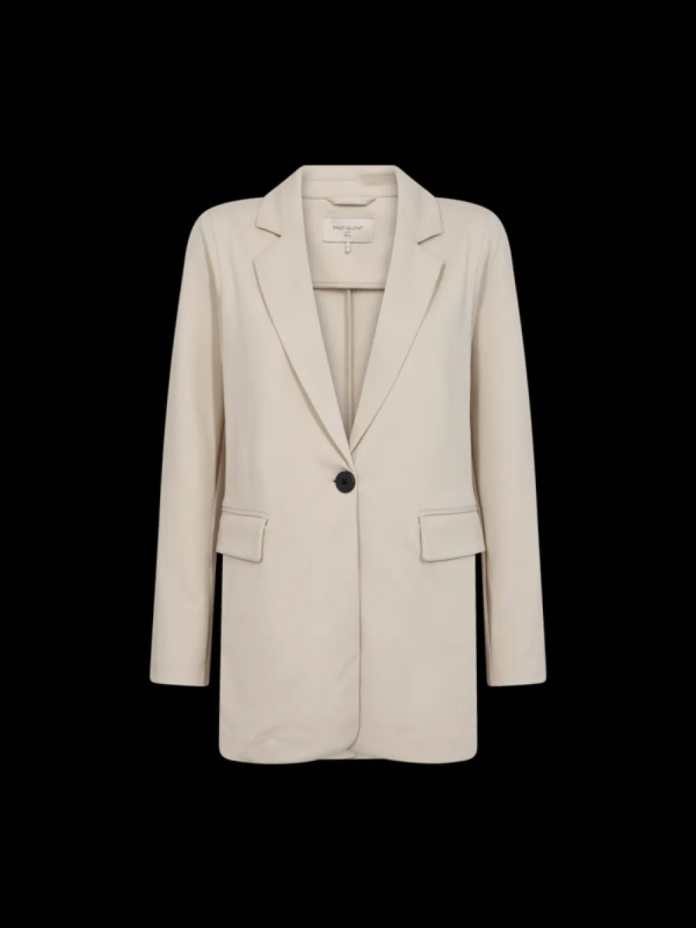 Freequentin tyylikäs, yksivärinen bleiseri. Klassinen siluetti, suora istuvuus, nappikiinnitys edessä ja etutaskut..