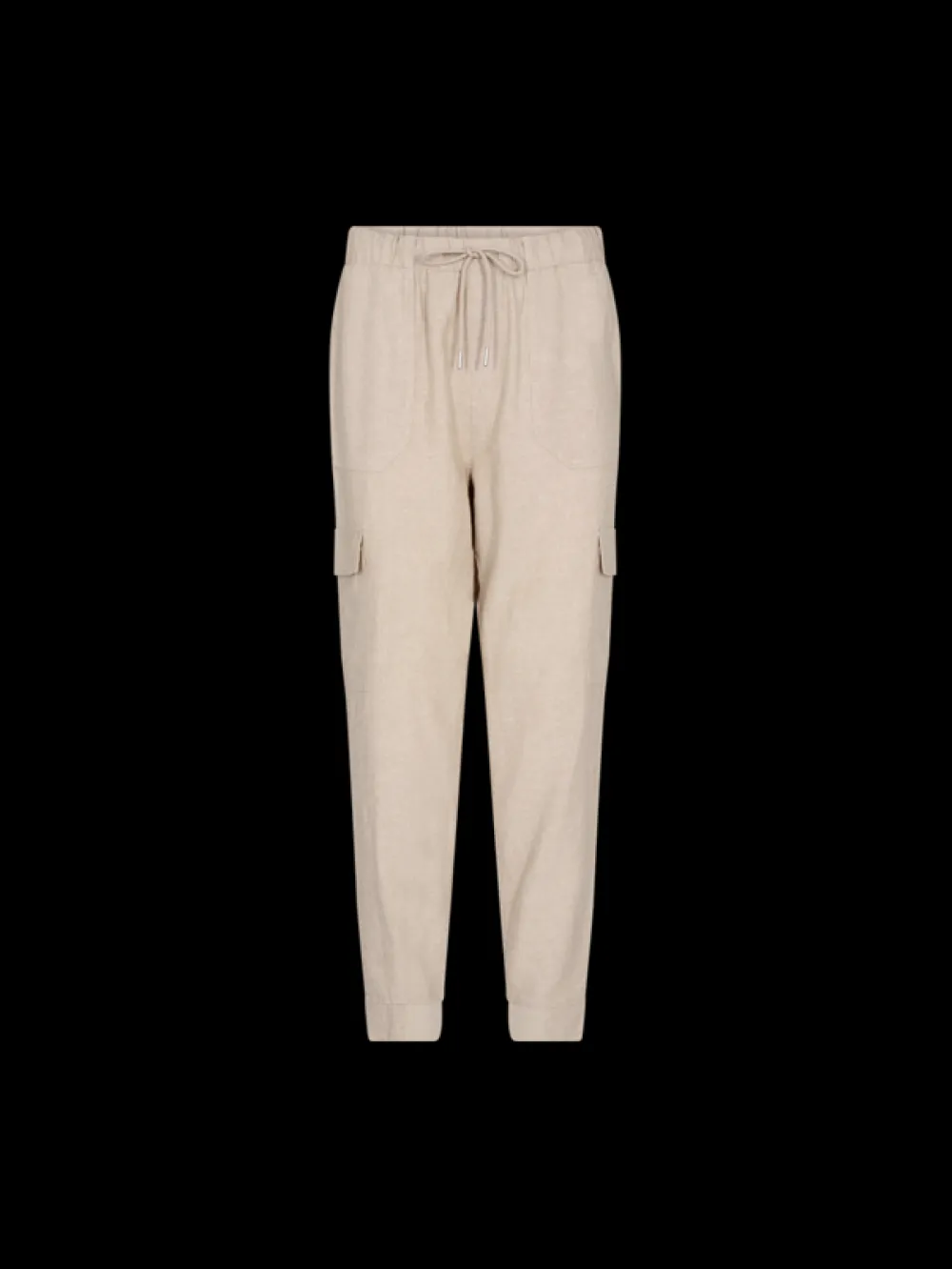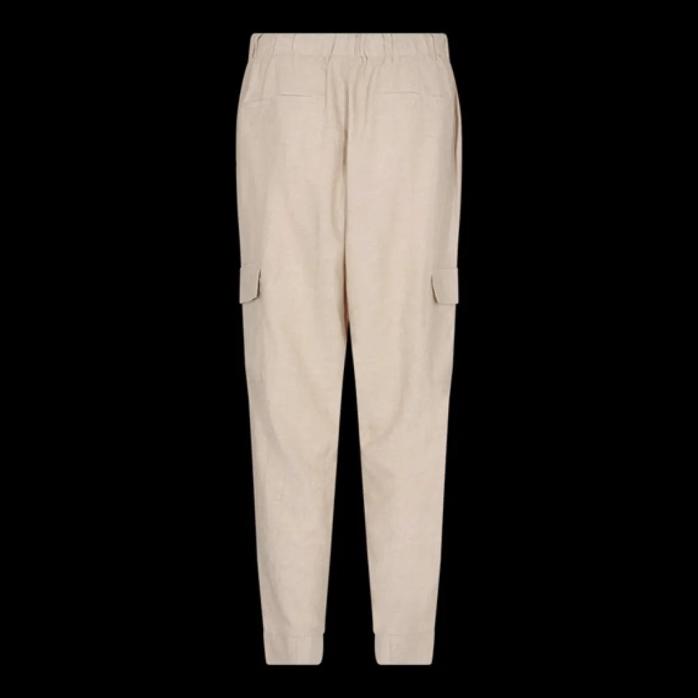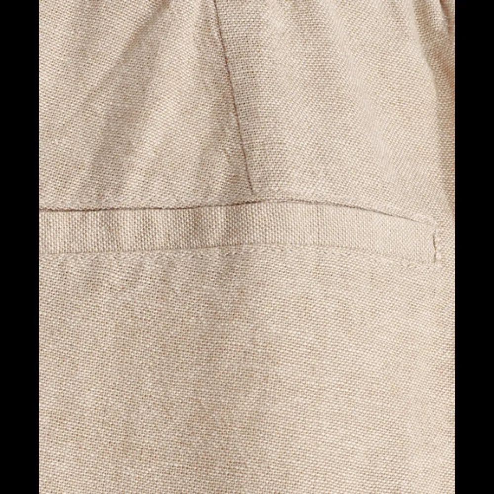 Valmistettu pehmeästä ja kevyestä pellavasekoitteesta. Housuissa on yksinkertainen siluetti, rento istuvuus, joustava vyötärönauha nyörillä sekä sivutaskut ja taskut lahkeissa.