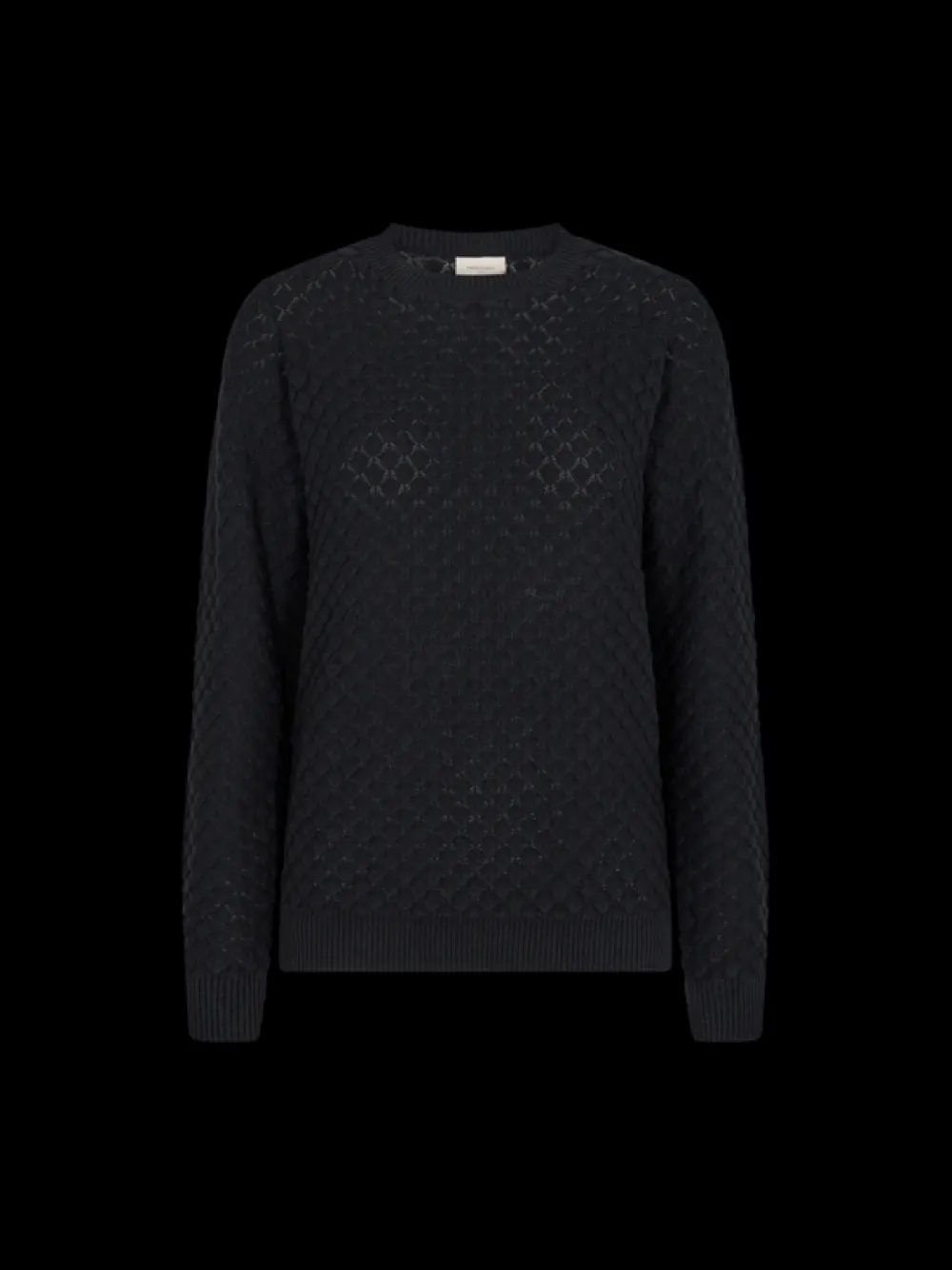Pehmeä puuvillaneule pyöreällä pääntiellä. Neuleessa on pitkät hihat joidenka suissa on joustavat resorit.
