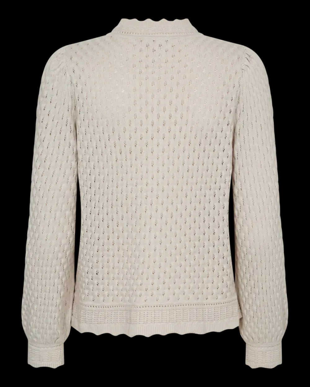 Freequentin kaunis pitsikoristeinen neule pitkillä puhvimaisilla hihoilla. Rento istuvuus.