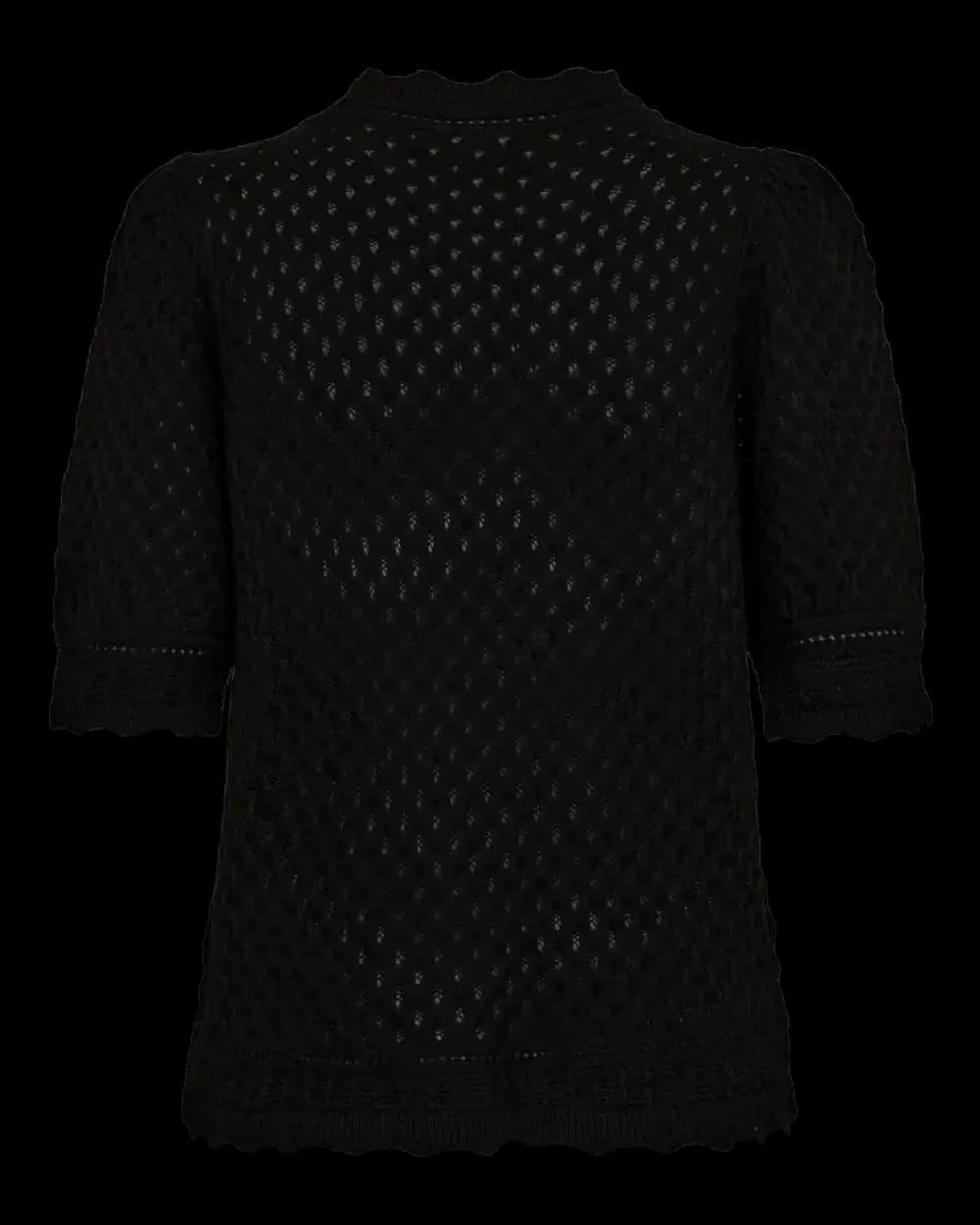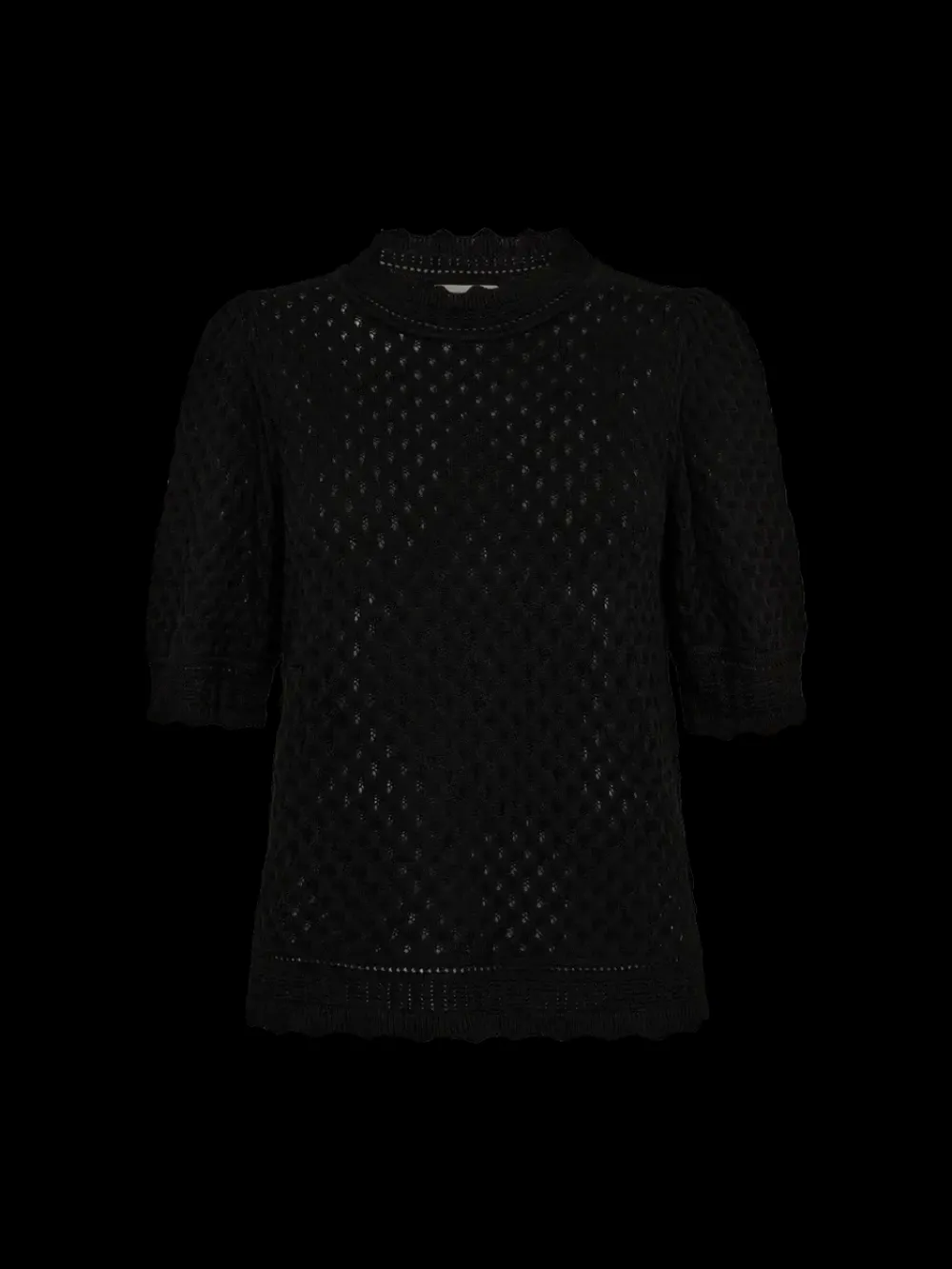 Freequent-neulepusero pehmeää, ohutta materiaalia, jossa on tyylikäs,kuvio. Lisäksi villapaidassa on yksinkertainen siluetti, jossa on lyhyet puhvihihat, kampasimpukkareunat sekä rento istuvuus.