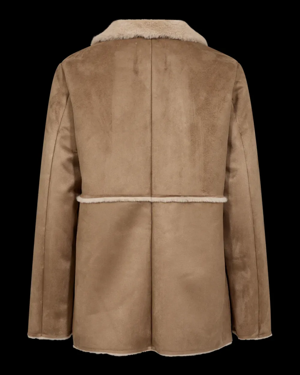 Freequent-takki pehmeästä ja ylellisestä mokkanahkajäljitelmämateriaalista ja erittäin pehmeästä tekoturkisvuoresta. Takissa on kaksirivinen nappikiinnitys, etutaskut, kaulus ja käänteiset saumat tyylikkään ilmeen luomiseksi.