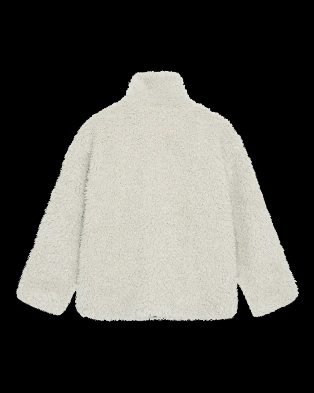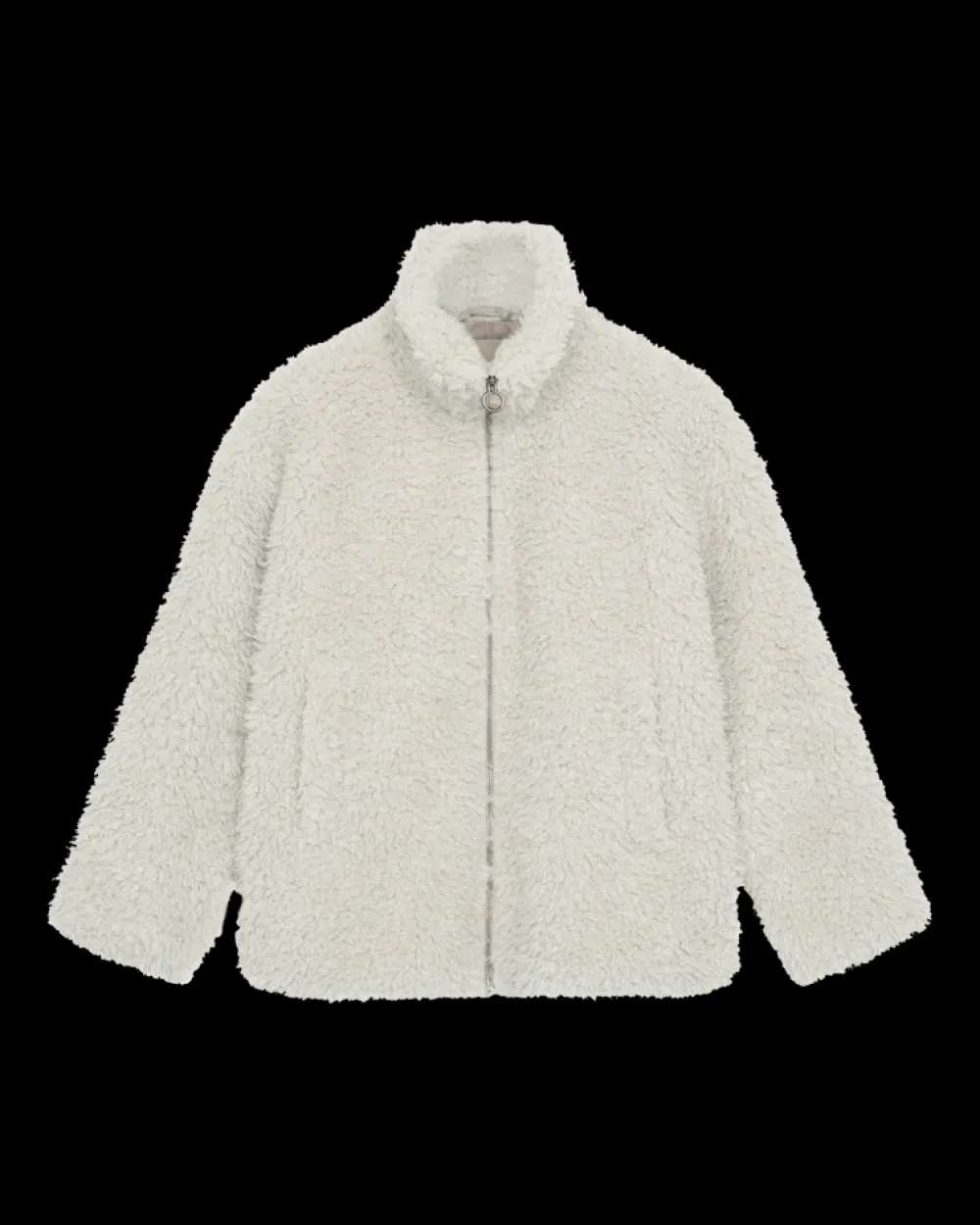 Freequent-takki erittäin pehmeästä, kiharasta tekoturkismateriaalista. Takissa on lyhyt malli, pitkät hihat, korkea kaulus, vetoketjukiinnitys ja rento istuvuus.