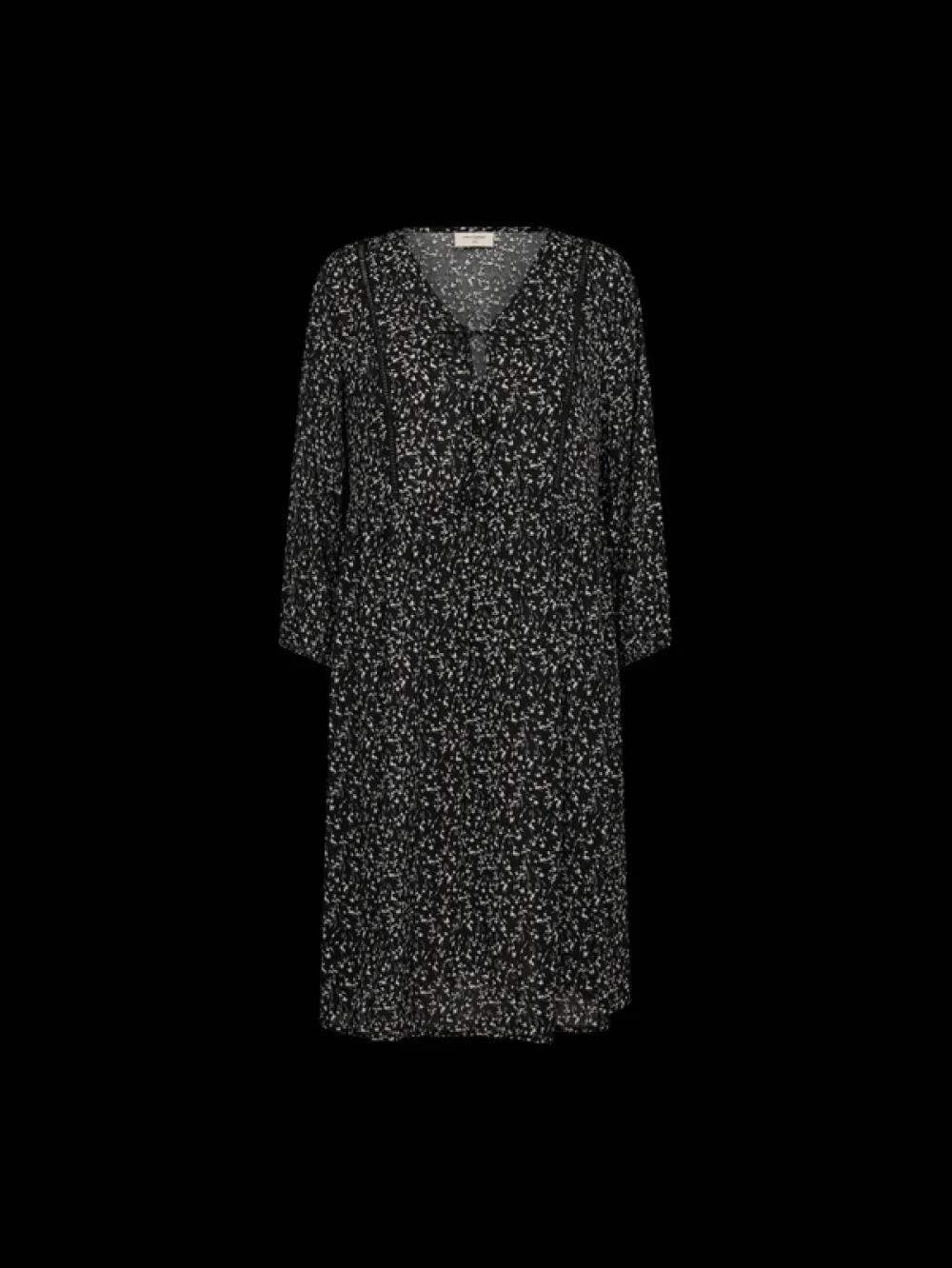 Freequentin kaunis mekko v-pääntiellä ja solmittavalla nyörillä. 3/4 ilmapallohihat.