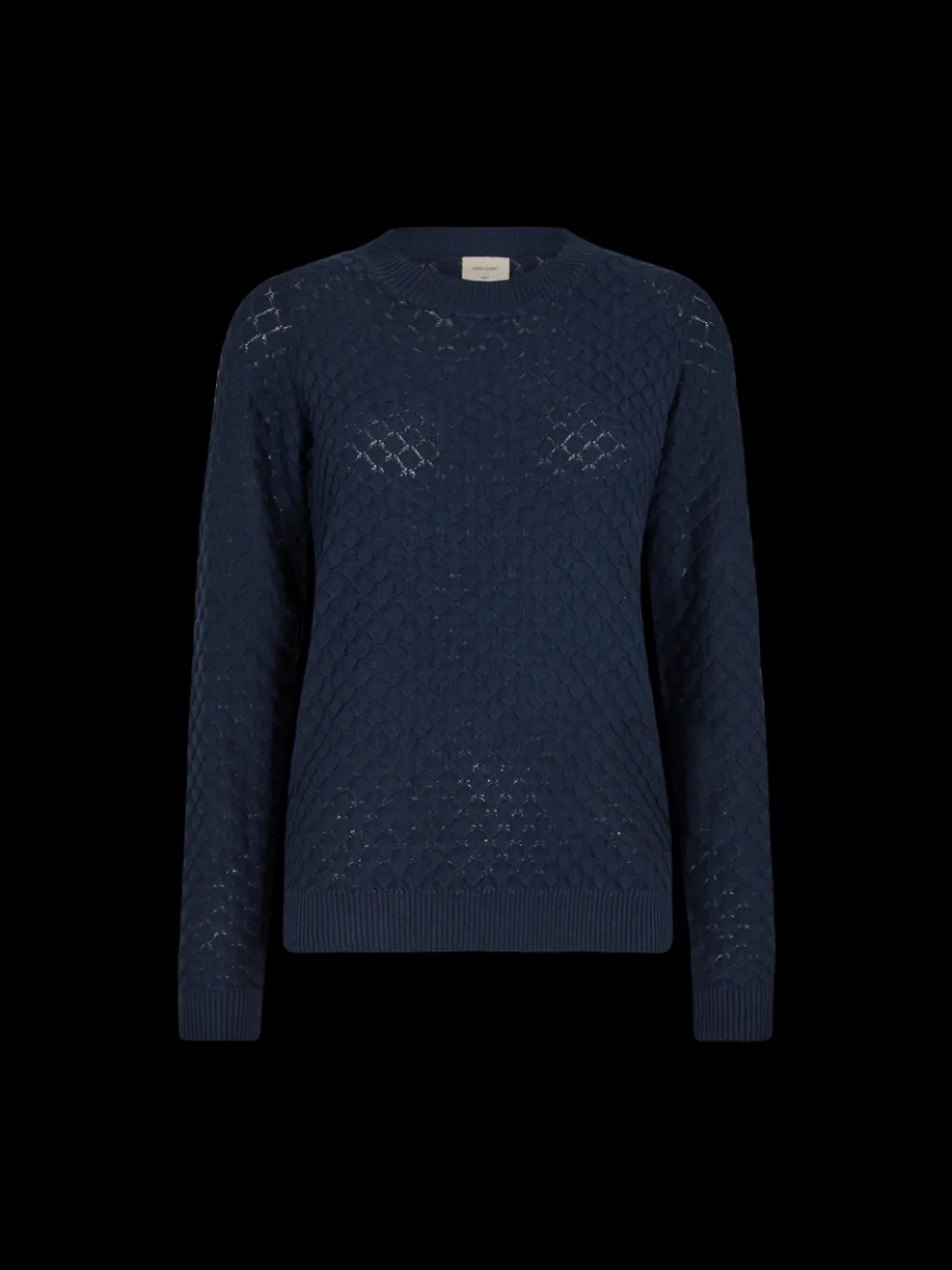 Pehmeä puuvillaneule pyöreällä pääntiellä. Neuleessa on pitkät hihat joidenka suissa on joustavat resorit.