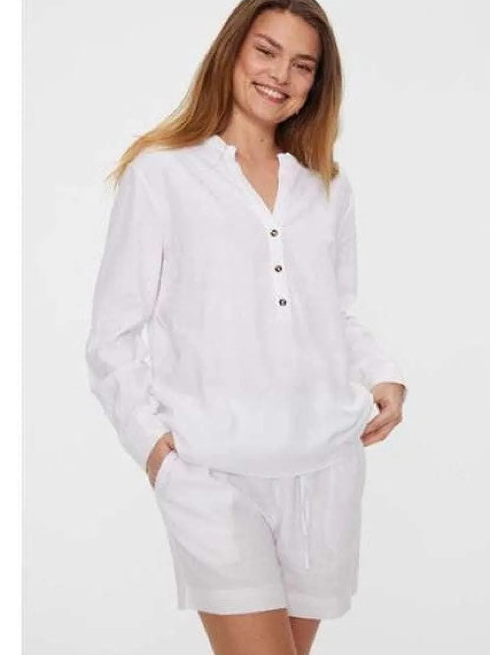 Kaunis paitapusero kolmella napilla. Pellavasekoitteinen.