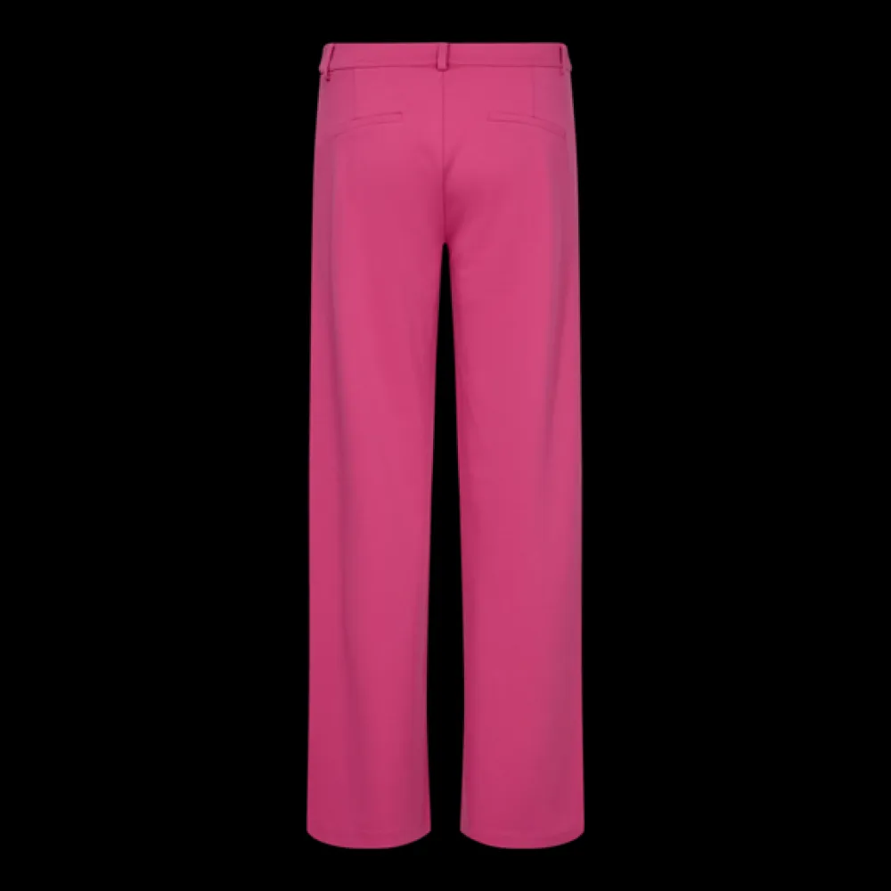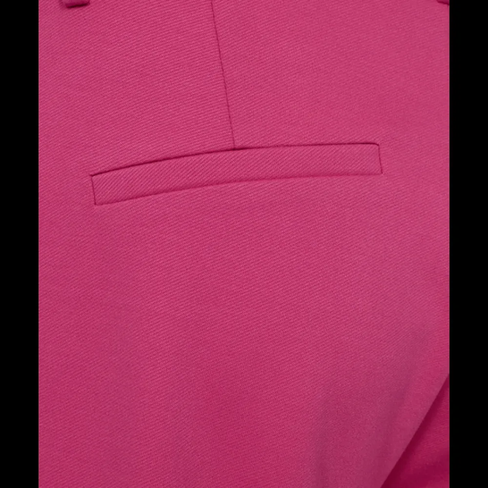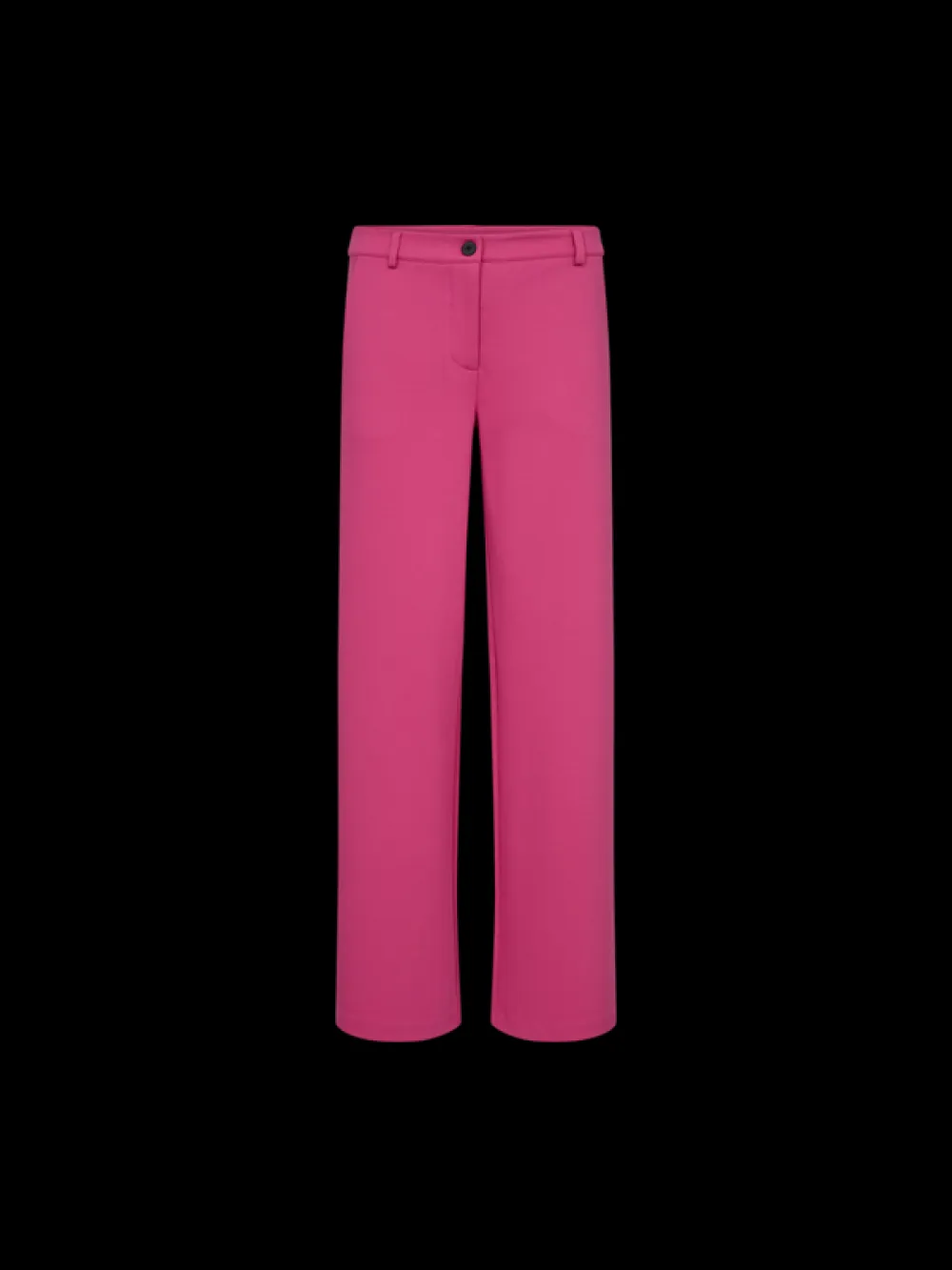Naisten leveälahkeiset jerseyhousut. Housuissa on kiinnityksenä vetoketju ja nappi .