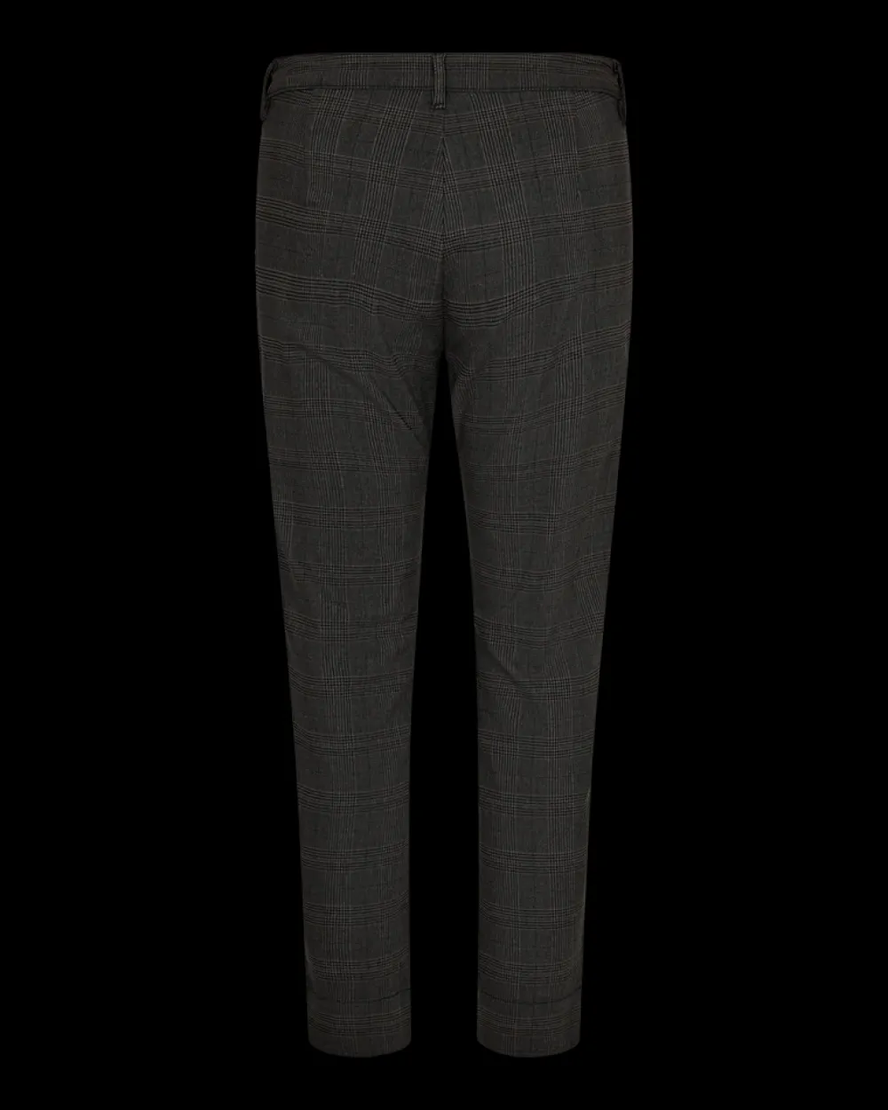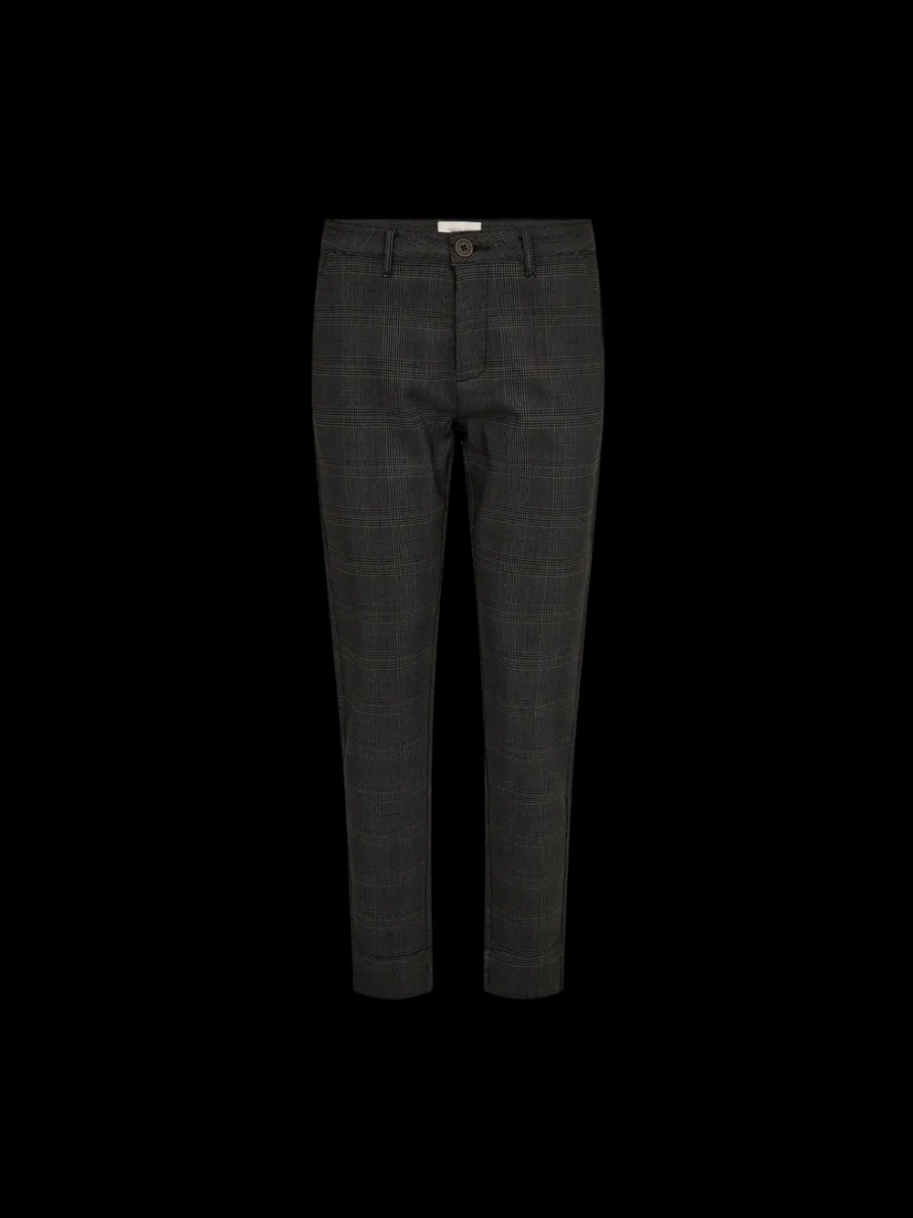 Housuissa on yksinkertainen siluetti, korkea vyötärö, sivutaskut, nappi- ja vetoketjukiinnitys, halkio nilkkapituisissa lahkeissa ja elegantti, kapea istuvuus.