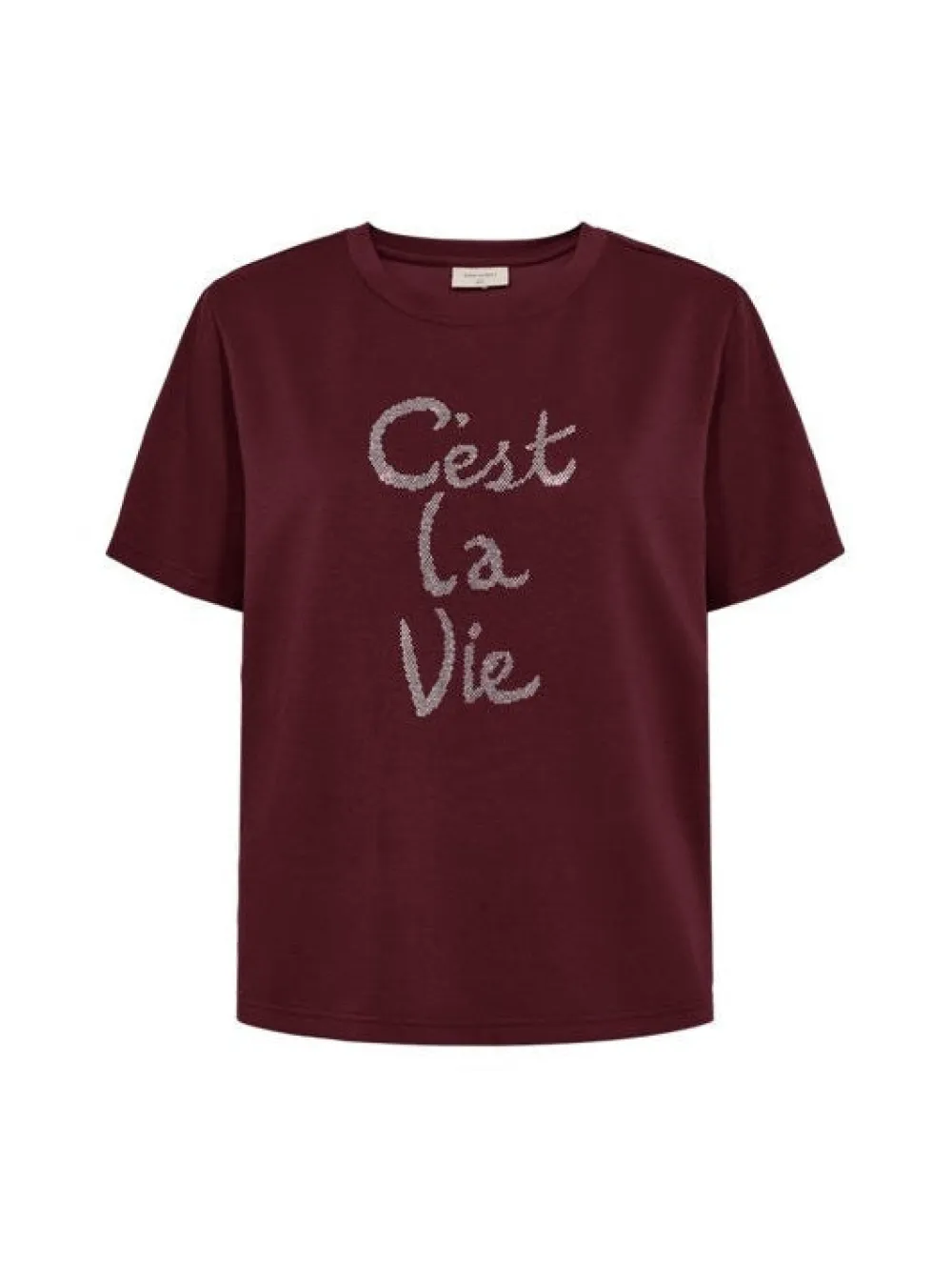 Freequent-t-paita pehmeimmästä materiaalista. T-paidassa on yksinkertainen siluetti ja rento istuvuus, pyöreä pääntie resorilla, lyhyet hihat ja etuosassa hotfix-strassit tyylikkään ilmeen luomiseksi.