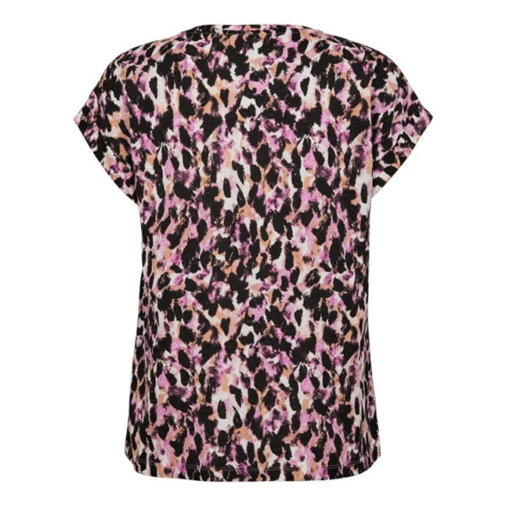 Tässä Freequentin lyhythihaisessa puserossa yhdistyy trendikäs design ja rento käyttömukavuus. Pusero on valmistettu pehmeästä ja hengittävästä materiaalista, ja sen rento leikkaus tekee siitä täydellisen arkeen tai vapaalle. Katseenvangitseva leopardihenkinen kuosi yhdistää mustaa, valkoista, pinkkiä ja hiekan sävyjä, luoden näyttävän mutta helposti yhdisteltävän ilmeen. V-kaula-aukko ja hihat ilman erillisiä saumoja viimeistelevät modernin siluetin.