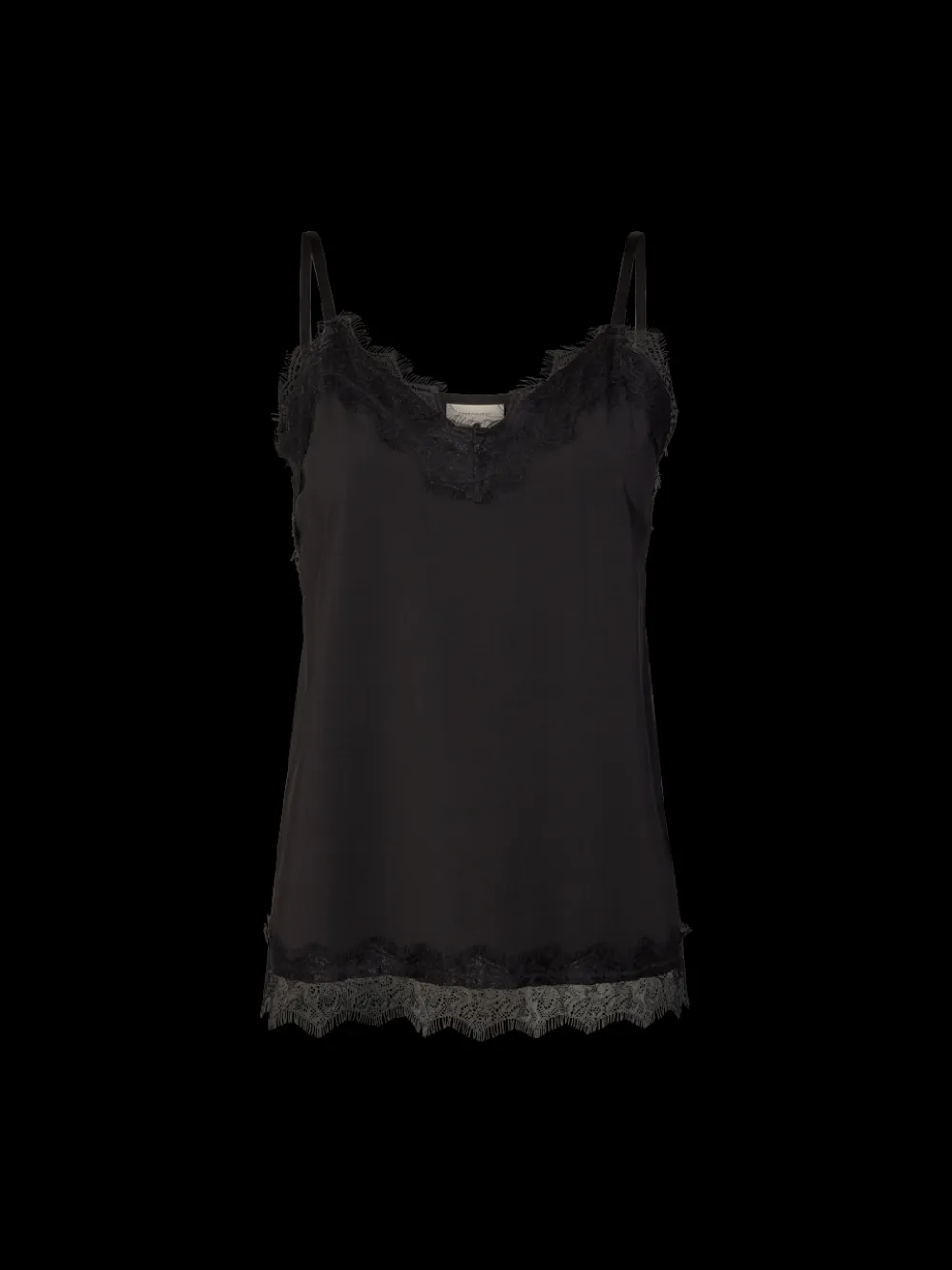 Monikäyttöinen alustoppi säädettävillä olkaimilla ja pitsisomisteella. Toimii kivasti esim. neuleiden ja erilaisten mekkojen alla.