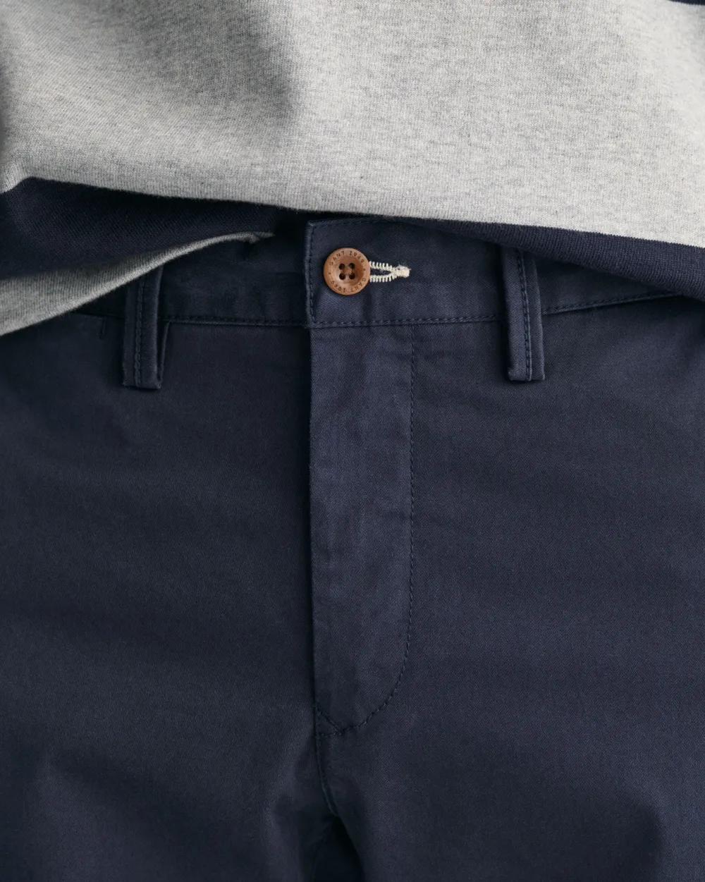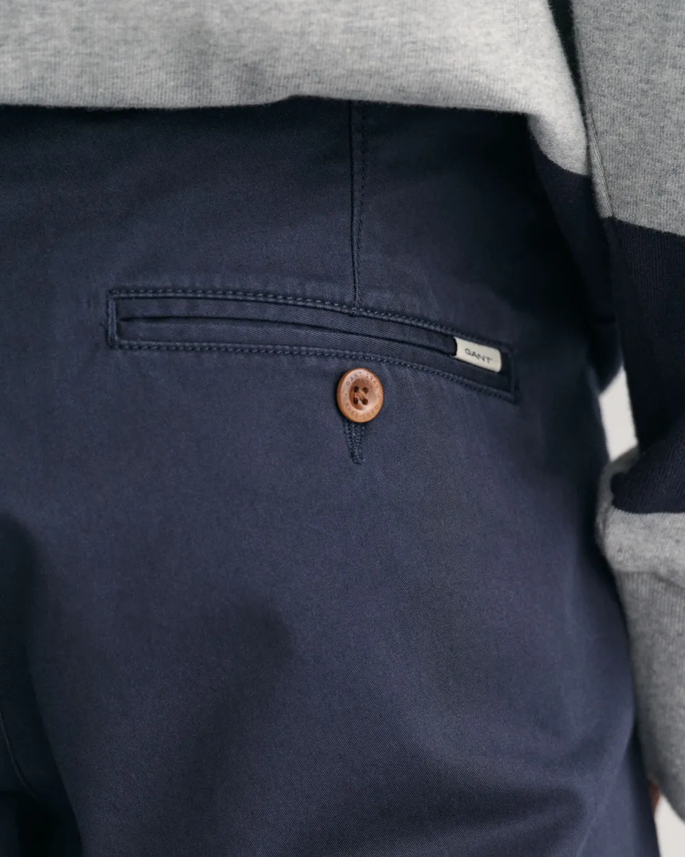 Päällinen: 61 % luomupuuvillaa, 37 % puuvillaa, 2 % elastaania. Taskujen vuori: 100 % puuvillaa.