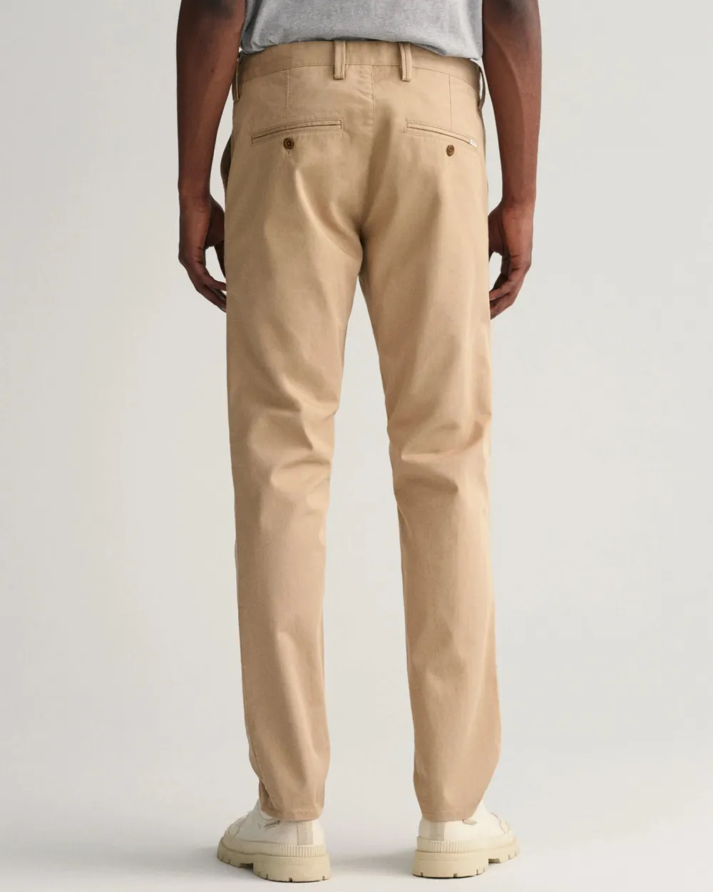 Päällinen: 61 % luomupuuvillaa, 37 % puuvillaa, 2 % elastaania. Taskujen vuori: 100 % puuvillaa.