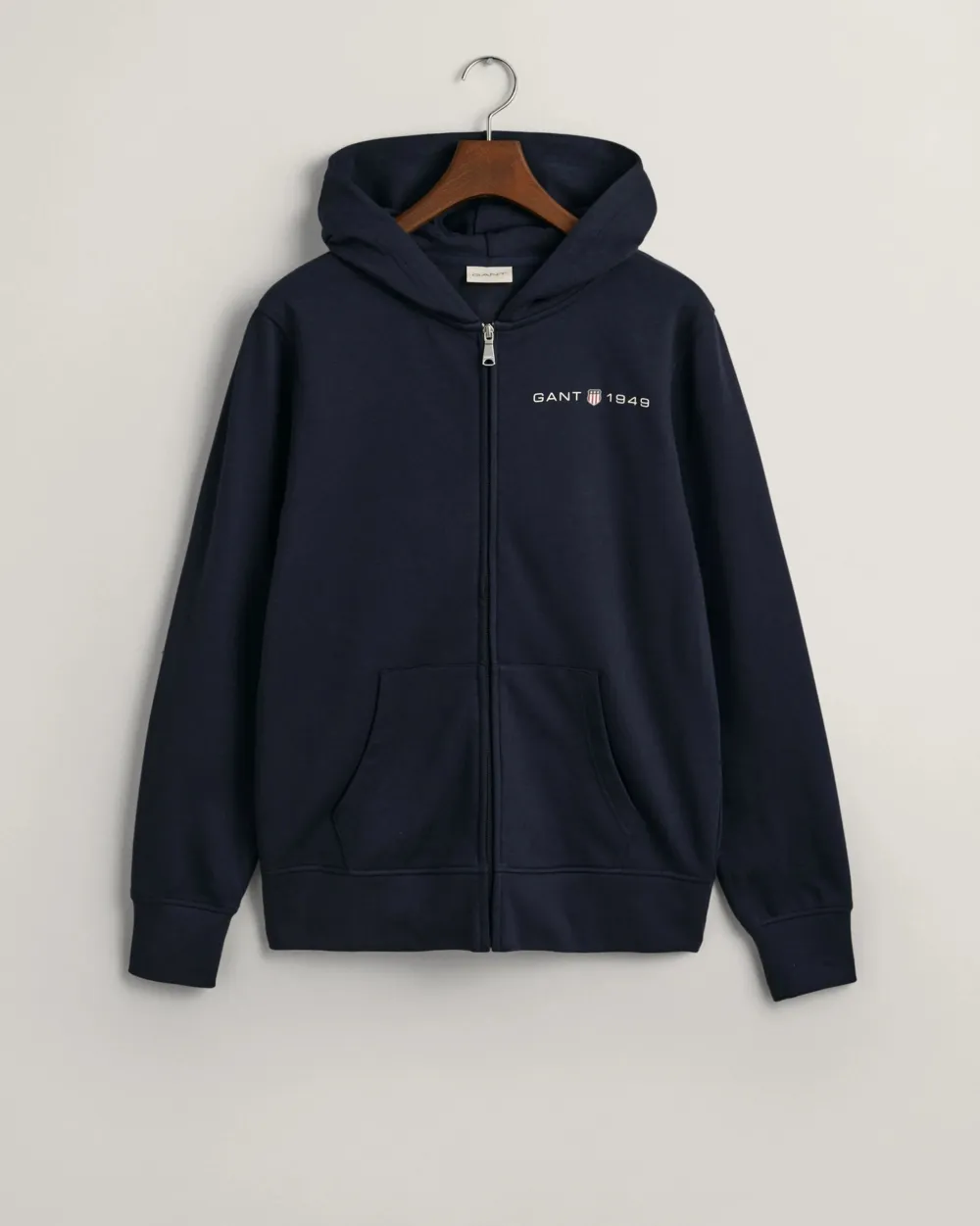 Gantin huppari, joka on valmistettu pehmeästä puuvillasekoitteesta. Regular fit -mallinen design sisältää klassisen hupun, täyspitkän vetoketjun edessä sekä ikonisen GANT 1949 Archive Shield -grafiikan, joka on painettu rintaan.