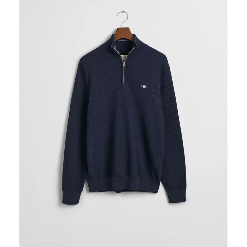 Gantin regular fit neulepuzero half zip kauluksella. Ribattu helma ja hihansuut. Brodeerattu Gant logo rinnassa.