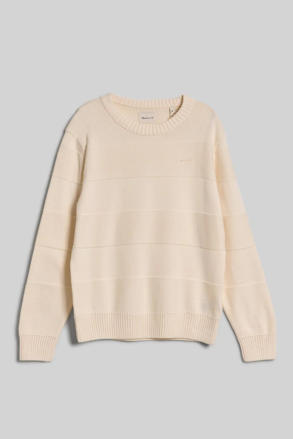 Puuvillaneule kudotuilla kohoraidoilla. Neuleessa on klassinen pyöreä pääntie. Normaali istuvuus.