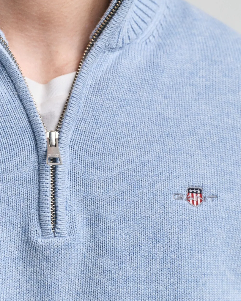 Rinnassa kirjailtu GANT-kuvio