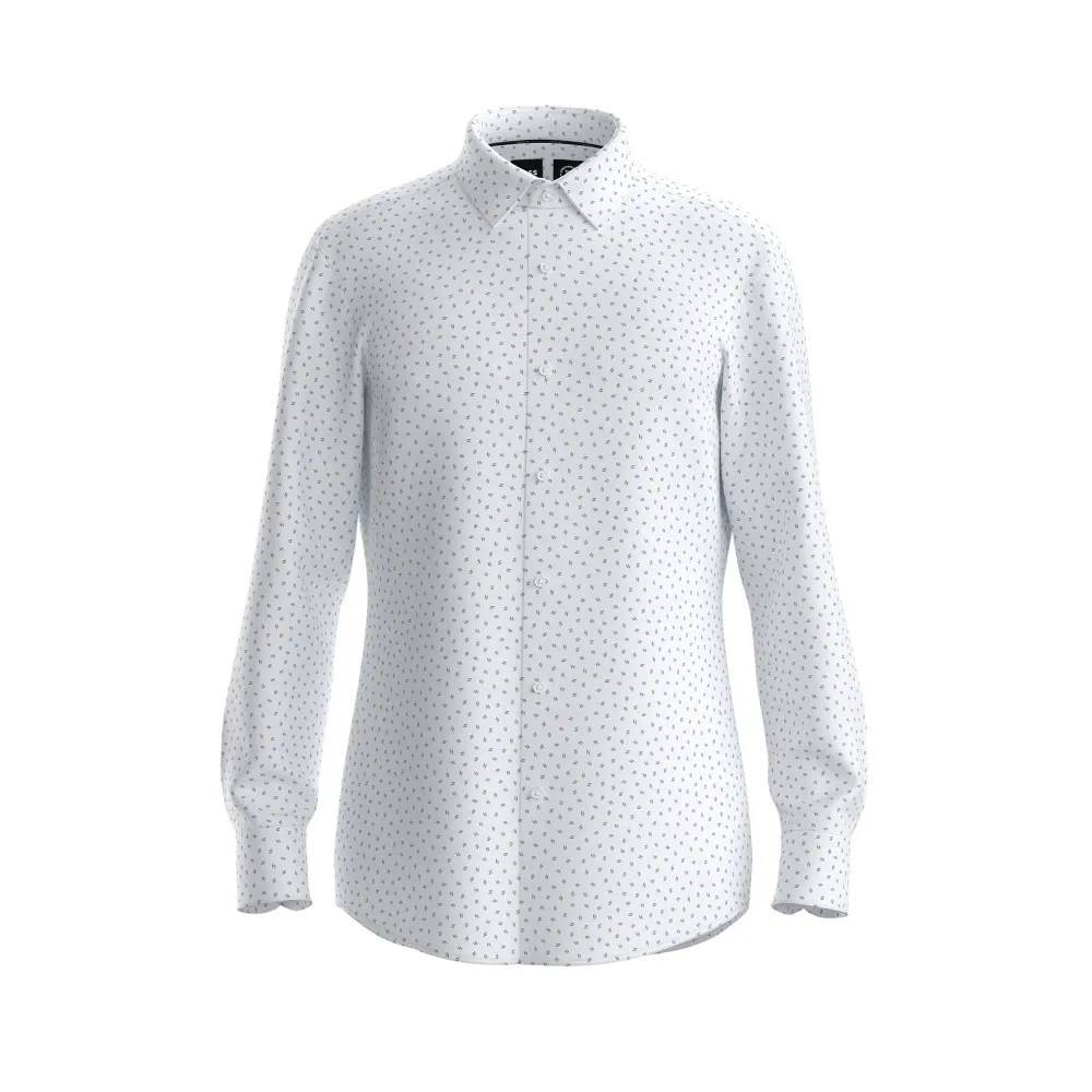Tämä miesten Slim-fit -kauluspaita on leikattu lähelle vartaloa, minkä ansiosta se luo siistin ja nykyaikaisen ilmeen. Kent-kaulus ja pyöreät hihansuut antavat paidalle klassisen liikepukeutumisen eleganssin