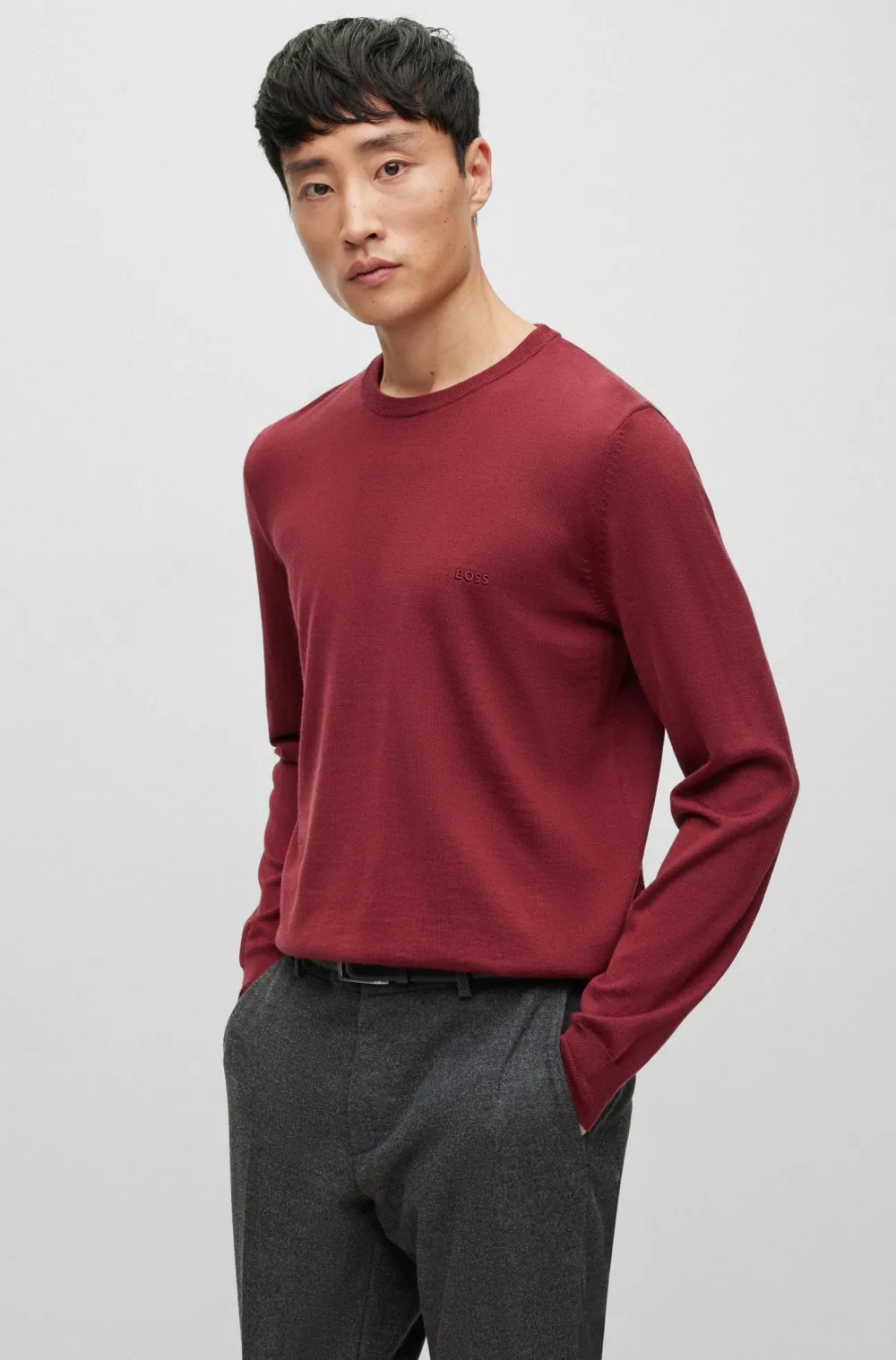 Hugo Bossin miesten klassinen neulepaita 100% villaa. Normaali istuvuus, pyöreä pääntie ja pitkät hihat. Pääntiellä, hihansuissa ja helmassa joustinneulosta. Rinnassa hillitty brändin logo.