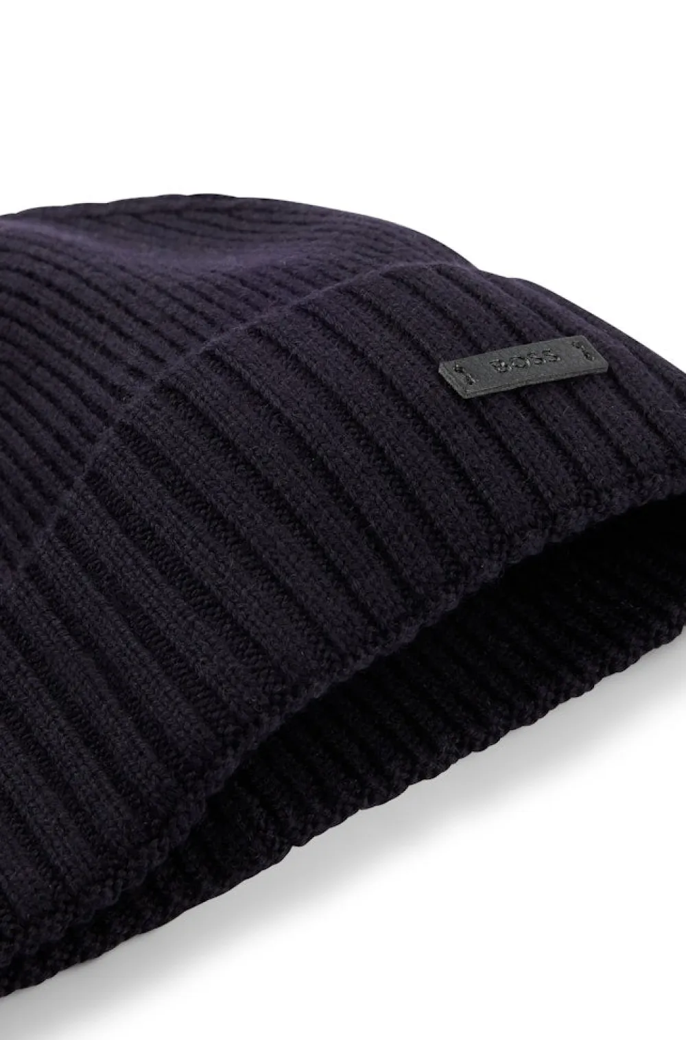 Viihtyisä BOSS-pipo, joka on neulottu kauttaaltaan joustinneuleella ja koristeltu keinonahkaisella logolaatalla. VASTUULLISTA tuotteissamme käytämme aina vähintään 60 % kestävämpiä raaka-aineita. Tämä tuote on valmistettu vastuullisesti hankitusta ja sertifioidusta villasta. Meille vastuullisesti hankittu merkitsee vapaana liikkumista ja eläinten hyvinvoinnin viiden vapauden standardien täyttämistä.