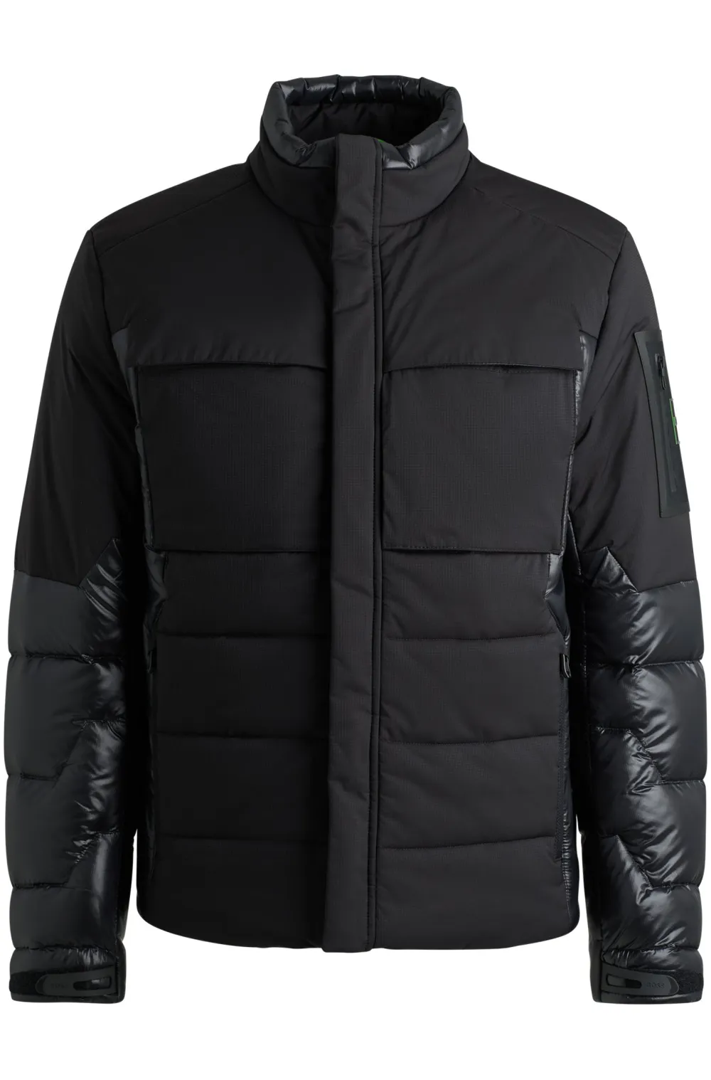 BOSSin vettä hylkivä takki, joka on valmistettu sekoitetuista materiaaleista sertifioidulla ankanuntuvalla ja höyhentäytteellä.