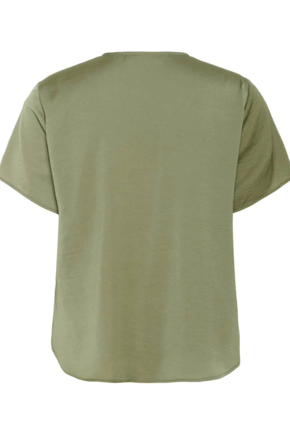Puseron V-pääntie tuo ryhtiä ja naisellisuutta, kun taas etuosan laskostus ja kevyt solmukohta luovat kauniin siluetin. Lyhyet hihat ja pehmeä, miellyttävä materiaali takaavat käyttömukavuuden koko päivän ajan.