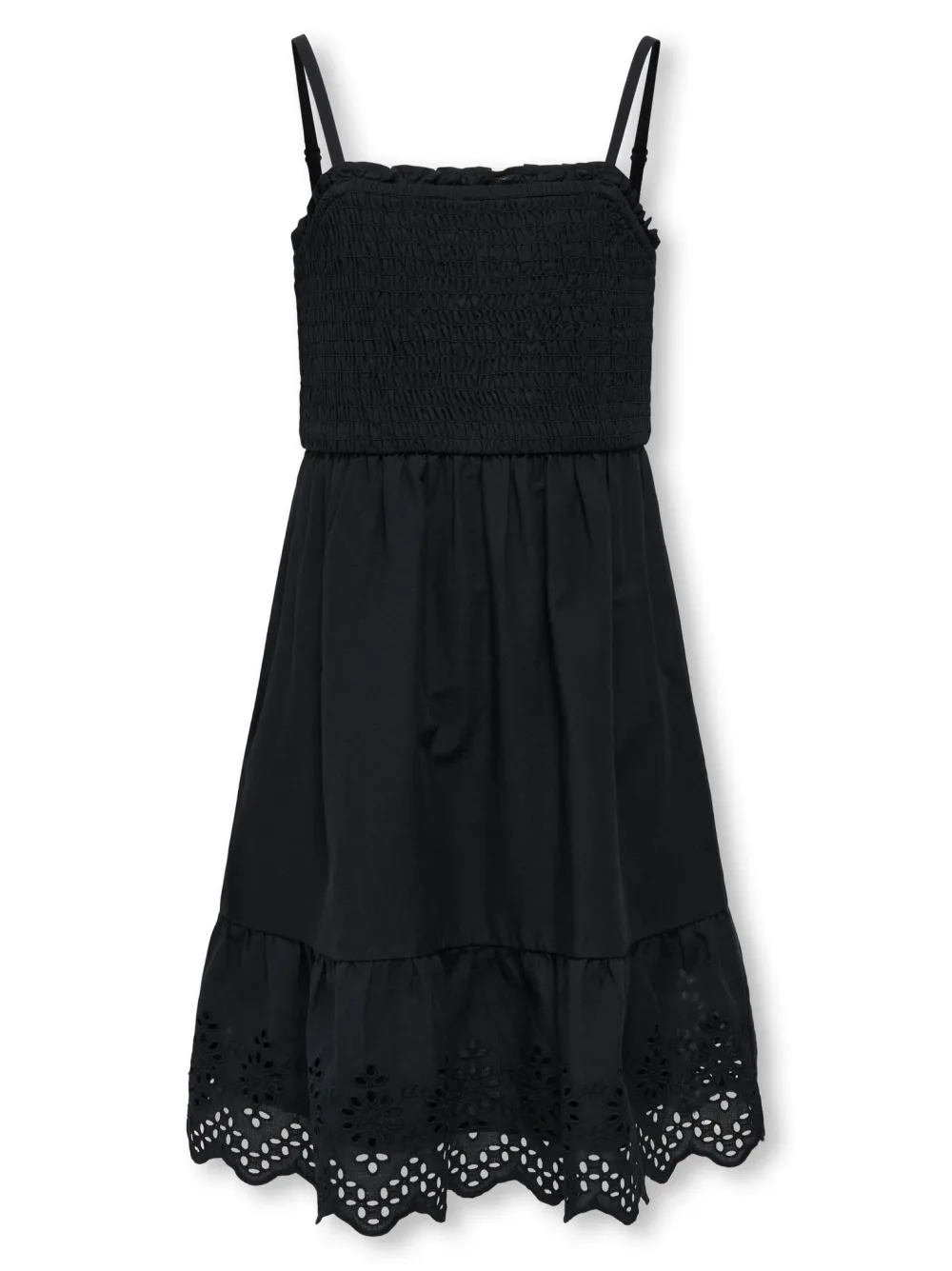 Kesämekko kauniilla pitsihelmalla. Olkaimet ovat säädettävät ja joustava vyötärö.